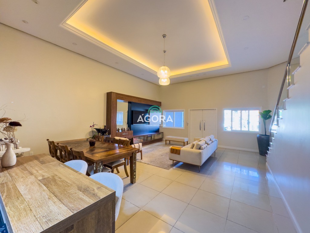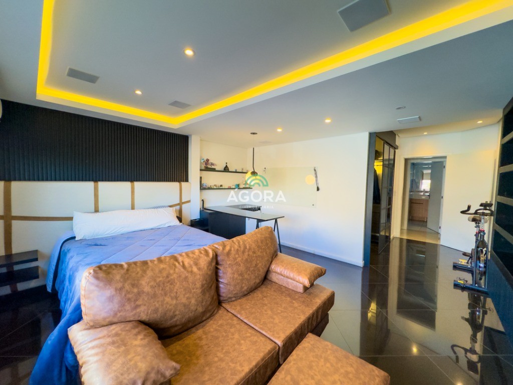 Sobrado de alto padrão com 4 (quatro) dormitórios, sendo 2 (duas) suítes, 1 (uma) delas com closet e banheiro equipado com 2 (dois) chuveiros, 2 (duas) cubas e espera para banheira de hidromassagem. O quarto dormitório pode ser utilizado como sala de tv, escritório ou cinema. Amplo living com 2 (dois) ambientes, cozinha mobiliada separada, sala de jantar, lavabo, área de serviço, banheiro auxiliar e despensa. Pátio generoso com espera para piscina e garagem para 2 (dois) carros grandes lado a lado. Acabamentos sofisticados com piso porcelanato e detalhes que imitam madeira. Aberturas em pvc. Localizado em bairro nobre de canoas, em frente a uma charmosa praça.