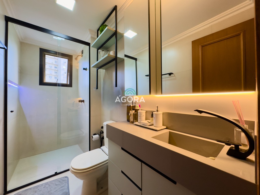 Ágora Cia Imobiliária vende: Apartamento de 82,59m² privativos, 3 (três) dormitórios, sendo 1 (uma) suíte com sacada. Living integrado entre sala de estar, jantar e cozinha estilo americana, churrasqueira, banheiro social, área de serviço e 2 (duas) vagas de garagem. Imóvel possui esperar para splits em todos os cômodos e esperas para aquecedor de água nas principais torneiras e fechadura eletrônica em cada unidade.