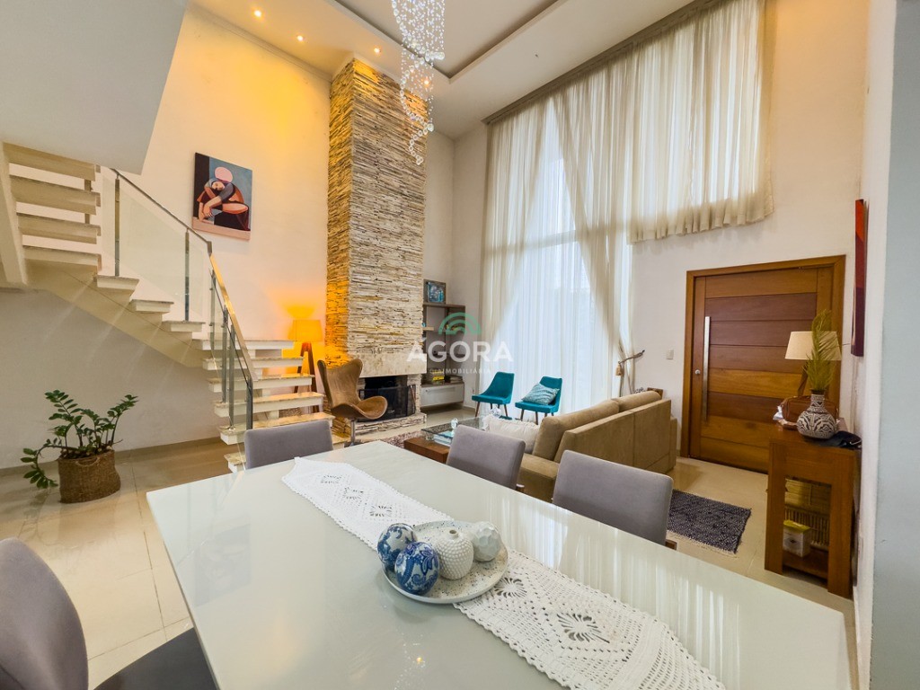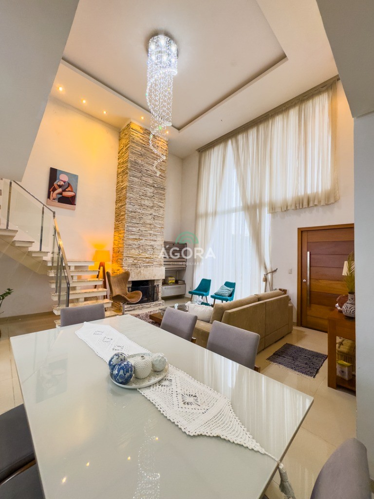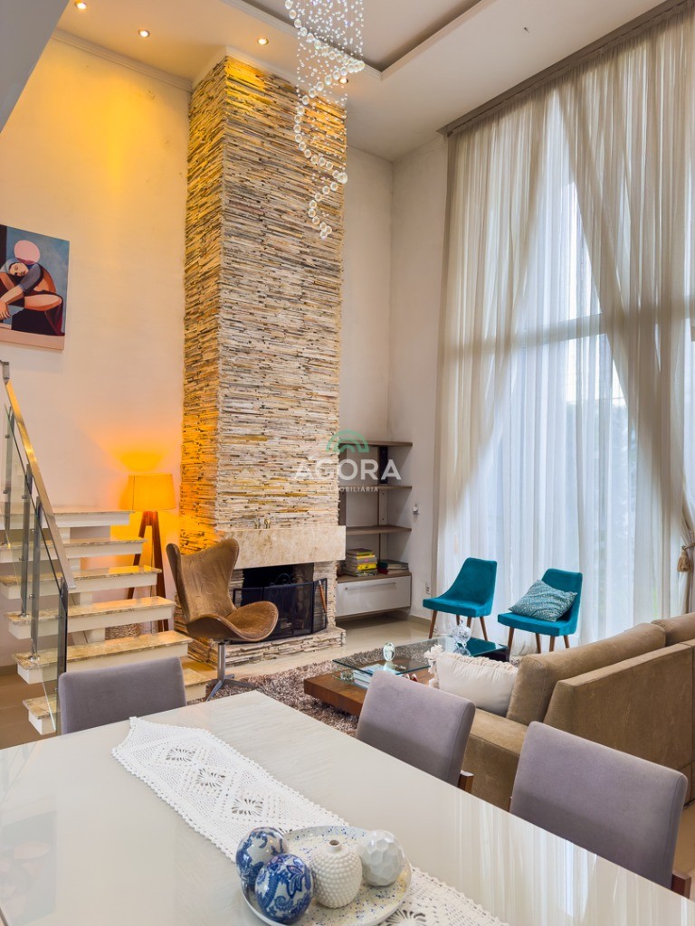 Agora Cia Imobiliária vende: Sobrado em condomínio com 200m² privativos; 2(dois) dormitórios, sendo 1(uma) suíte máster com: 2(dois)Closets, banheira de hidromassagem, lareira e sacada; Escritório que pode ser transformado em um banheiro para segunda suíte; Living para 2(dois) ambientes com lareira e cozinha integrada; Espaço gourmet com lareira. O imóvel fica semimobiliado, com todos os móveis planejados e eletros embutidos, 5 Split´s. Condomínio com infra excelente: 2(dois) salões de festas, playground, academia, quiosque com churrasqueira, quadra de esporte e segurança 24h; Localizado em região privilegiada, a poucos minutos do parkshopping e BR-116.