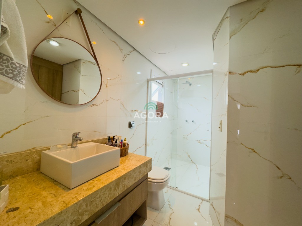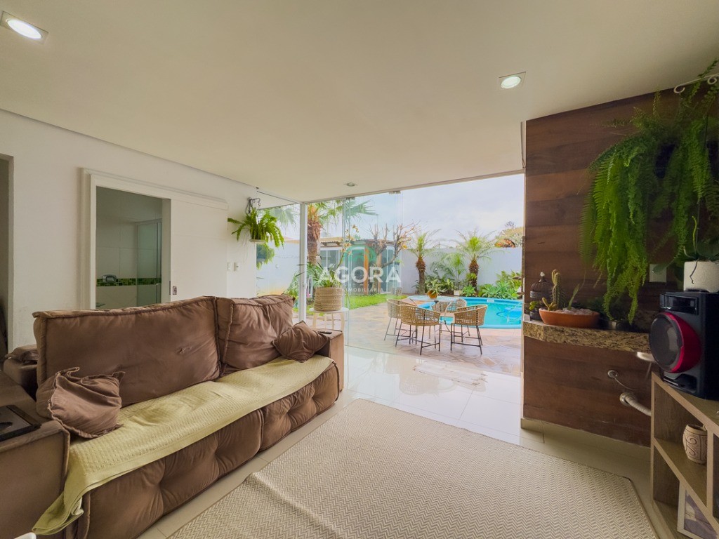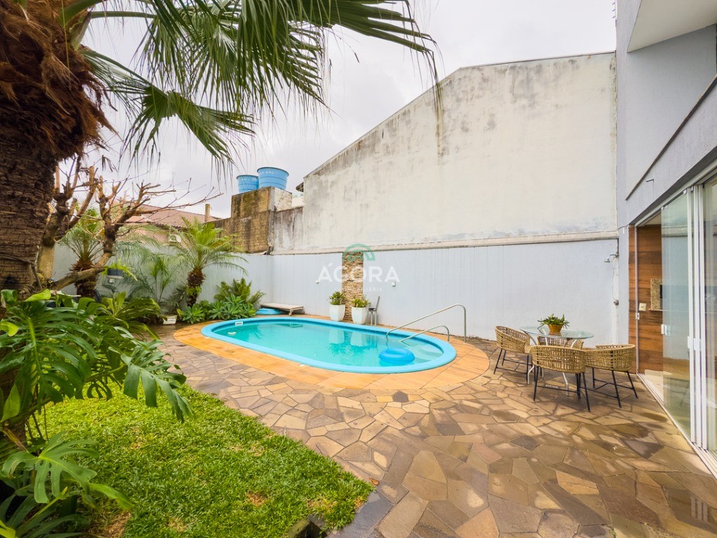 Sobrado de alto padrão com 333,85 m² privativos, em terreno de 11 x 30,35 m. Living integrado com sala de estar e jantar, lareira e churrasqueira elétrica pé-direito duplo, proporcionando amplitude e iluminação natural Área de serviço independente lavabo e banheiro completo Área externa: pátio aos fundos com piscina (espera para aquecimento) quiosque completo pátio lateral infraestrutura e conforto: sistema de aquecimento com placas fotovoltaicas em todos os cômodos sistema de alarme e câmeras acomodações: 3 (três) suítes, todas com varandas terceiro pavimento com sala de escritório e ampla varanda 4 (quatro) vagas de garagem, sendo 2 (duas) cobertas.