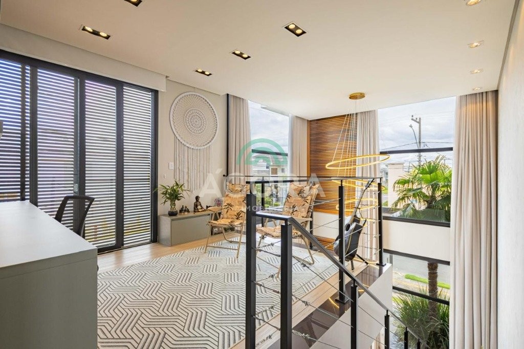 Excelente sobrado com 3 (três) dormitórios, sendo 1 (uma) suíte master com closet medindo 230m² de área privativa, projeto interno e externo assinado por daniel kroth, área gourmet com parrilla e cooktop, paredes laterais e dos quartos duplas para maior conforto térmico e acústico esquadrias em pvc da weiku do brasil com alta performance em isolamento três câmeras externas e alarme em todas as aberturas telhado em zinco com isolamento térmico e acústico hidráulica amanco e tigre elétrica ar-condicionado central tipo cassete de 36 mil btus água quente em todas as torneiras com junker de 36 litros alimentado por gás piscina em alvenaria com aquecimento solar. Garagem 4 (quatro) carros lado a lado, sendo 2 (duas) descobertas, área gourmet com parrilla e cooktop. Localizado próximo ao park shopping e fácil acesso a todas as principais vias da cidade e comércio local