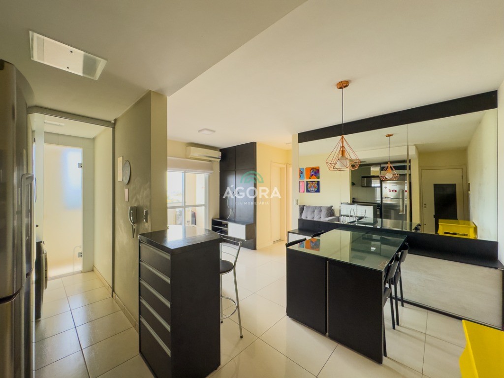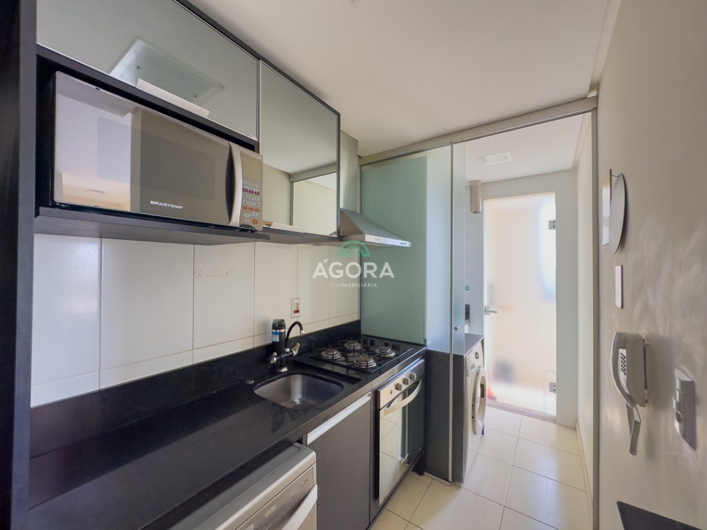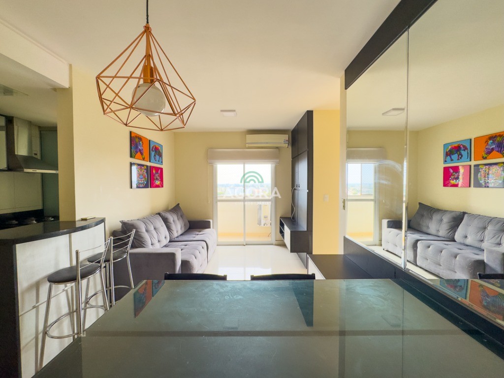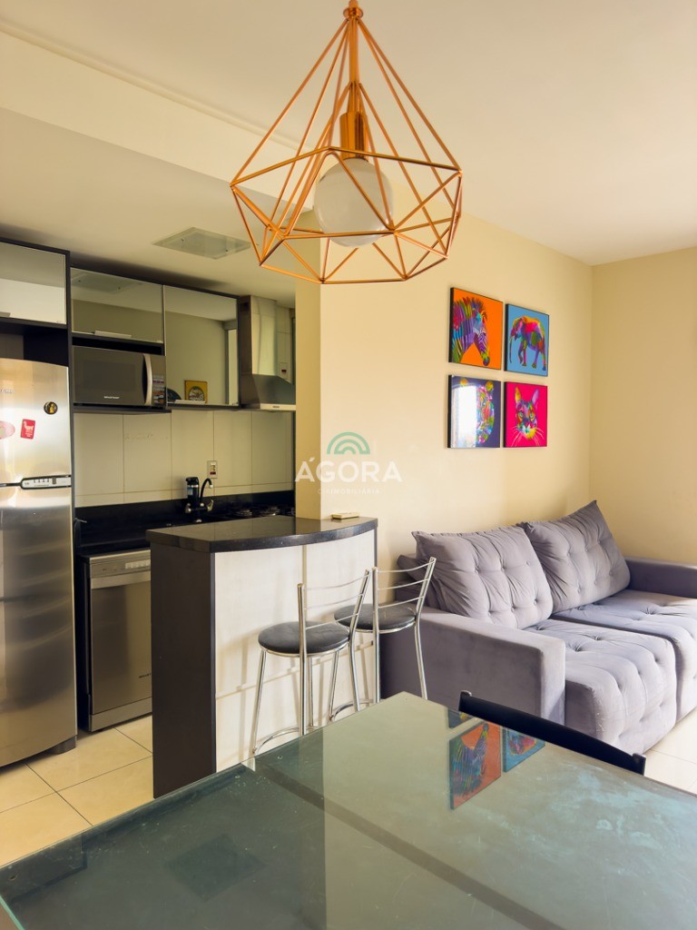 Apartamento com 2 (dois) dormitórios, semi-mobiliado, sala, cozinha, área de serviço, sacada com churrasqueira, banheiro social e 2 (duas) vagas de garagem cobertas lado a lado. Local alto com excelente visualização do por do sol. Próximo ao colégio espirito santo e comércios em geral.