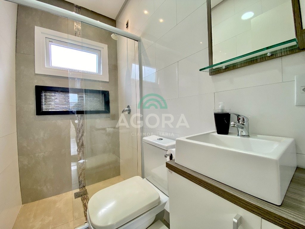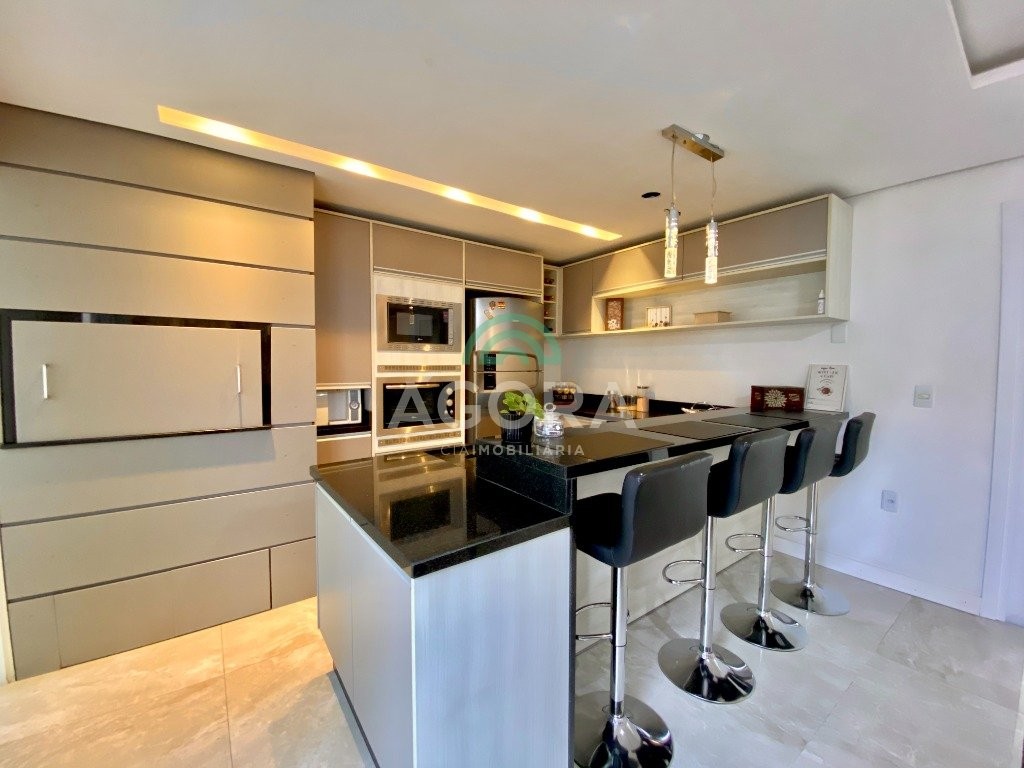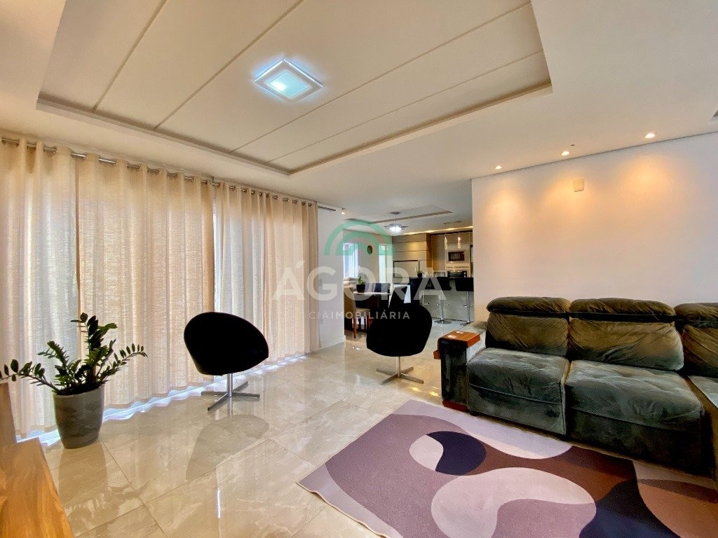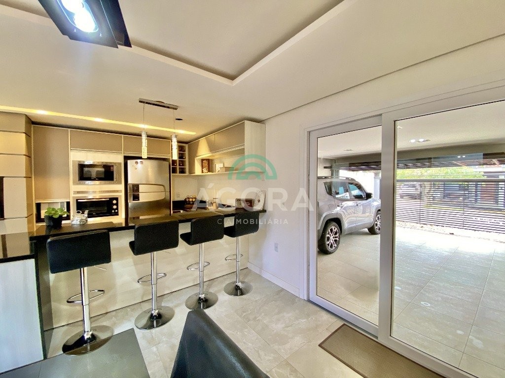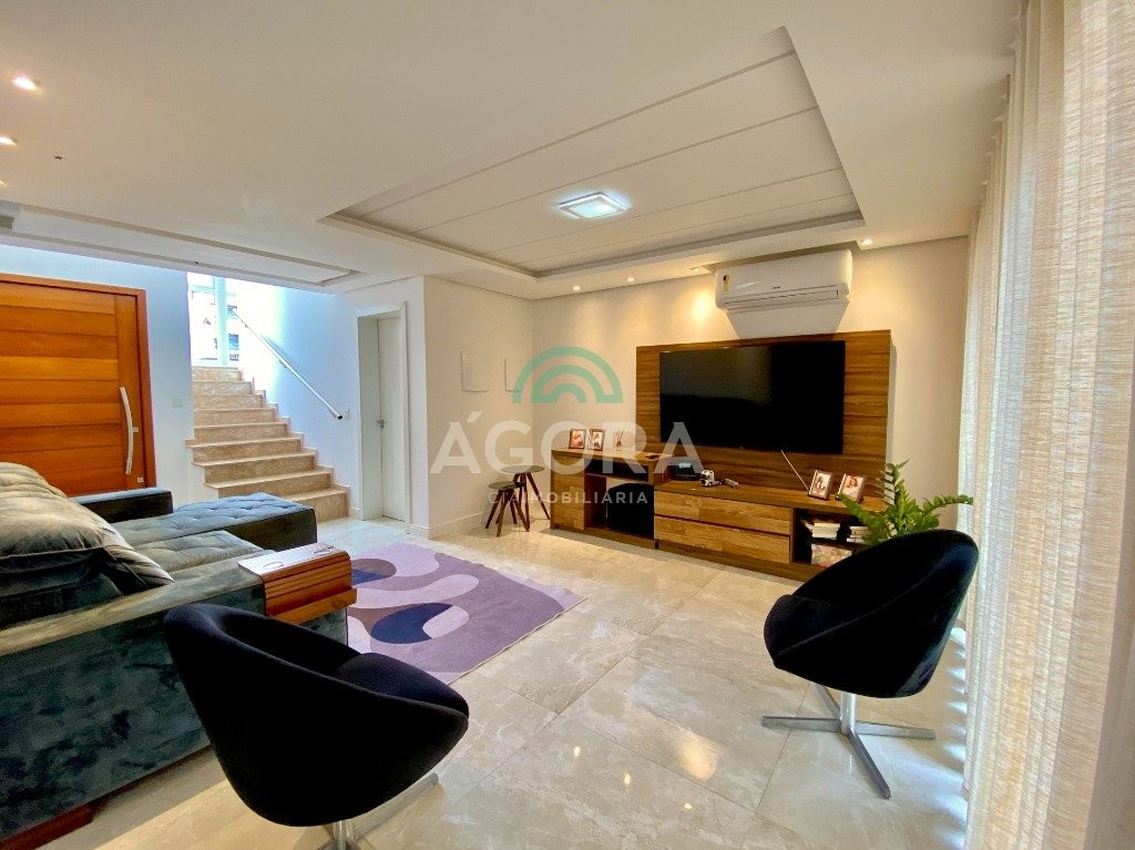 Lindíssimo sobrado de alto padrão semi-mobiliado, composto de 3 (três) dormitórios, sendo 1 (uma) suíte com sacada e closet, em piso vinílico, com escada em mármore travertino, sala de estar e jantar integradas, cozinha com churrasqueira e bancada estilo americana, banheiro social, lavabo, lavanderia independente, piso portinari em todo térreo e pátio nos fundos com piscina e banheiro auxiliar. Vaga de garagem coberta para 2 (dois) veículos e descoberta para mais 2 (dois) veículos.