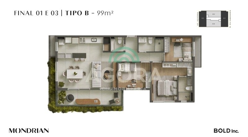 Torre única previsão de entrega 04/2028 mondrian art residences - viva o design, a exclusividade e a sofisticação em canoas Ágora cia imobiliária apresenta um empreendimento único, pensado para quem valoriza conforto, estilo e uma localização privilegiada. Diferenciais do imóvel 99m² de área privativa 3 (três) dormitórios, incluindo uma elegante suíte com sacada 2 (duas) vagas de garagem por unidade elevador exclusivo para cada 2 unidades - mais privacidade e conforto rooftop com lazer completo e vista panorâmica espaço coworking para produtividade no dia a dia sala de cinema privativa - cinema em casa com toda comodidade infraestrutura de lazer completa - do térreo ao rooftop piscinas adulto e infantil espaço gourmet sofisticado salão de festas para celebrações sala de jogos cinema espaço kids seguro e divertido fitness center completo bicicletário moderno tecnologia e segurança de alto nível gerador de energia para áreas comuns e um ponto por apartamento ponto de recarga elétrica junto à vaga de garagem guarita com vidro blindado - mais segurança sem abrir mão do design localização privilegiada de frente para uma praça arborizada, o mondrian oferece: tranquilidade e contato com a natureza proximidade com shopping centers, supermercados, restaurantes e bares fácil acesso a escolas, universidades, farmácias, academias e demais conveniências urbanas consulte a tabela para outras unidades disponíveis!
