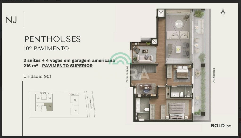 Torre única com 48 unidades previsão de entrega 10/2027 sinatra - alto padrão, sofisticação e design em canoas sobre o empreendimento - previsão 10/2027 localizado na av. Noruega, ao lado do parkshopping canoas projeto assinado por grandes nomes da arquitetura, interiores e paisagismo terreno com mais de 4. 500 m² e apenas 48 unidades exclusivas construção em alvenaria tradicional matrículas totalmente individualizadas tipologias gardens: 3 (três) suítes, até 292 m², com 2 (duas) ou 3 (três) vagas apartamentos: 3 (três) suítes, entre 139 m² e 237 m², com 2 (dois) ou 3 (três) vagas penthouses: até 4 (quarta) suítes, entre 216 m² e 266 m², com até 4 (quatro) vagas de garagem todas as plantas são personalizáveis estrutura e acabamentos esquadrias externas em alumínio preto liso esquadrias internas em madeira fechaduras digitais em todas as unidades vidros incolores fachada ventilada com acabamento em porcelanato varandas em todas as unidades com aba técnica (laje estendida para maior privacidade) infraestrutura e tecnologia medição individual de água e gás ar-condicionado central em todos os apartamentos espera para piso aquecido espera para persianas automatizadas tomada para fogão de indução tubulação com redução de ruídos sensor de gases cisterna com autonomia de 5 dias (captação de água da chuva) gerador para 100% do empreendimento e dos apartamentos placas fotovoltaicas para redução dos custos nas áreas comuns lazer e conveniência piscina coberta aquecida, piscina externa adulto e infantil academia equipada com aparelhos technogym spa, sauna seca, espaço massagem e quadra de beach tennis salão de festas gourmet, espaço gourmet, lounge, sala de jogos brinquedoteca, playground, espaço kids, coworking e bicicletário segurança portaria 24 horas com guarita blindada acesso por biometria e monitoramento por câmeras consulte a tabela para outras unidades disponíveis!