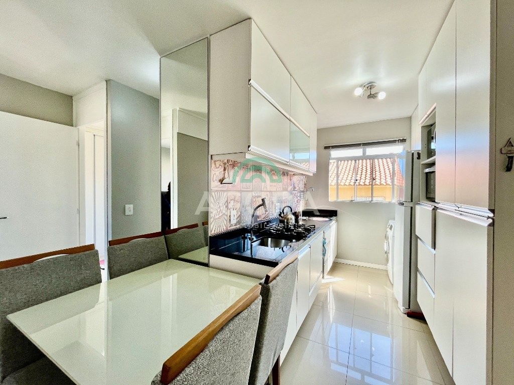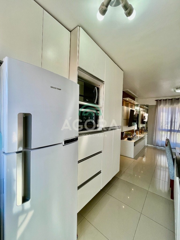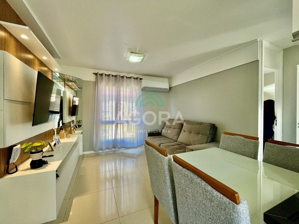 Apartamento mobiliado de 42,64m² privativos, distribuídos em 2 (dos) dormitórios, living integrado entre sala de estar e jantar, cozinha, banheiro social e vaga para 1 (um) carro. Permanece no imóvel mobiliado, sai somente, tvs, cama e geladeira. Incluindo também 1 (um) ar condicionado de 18 mil btus. O condomínio oferece infraestrutura completa com: portaria 24h, circuito de tv, salão de festas, churrasqueiras, quiosque, playground, sala de jogos, quadra de esportes, gás central, interfone, jardins, segurança e zeladoria. Localização privilegiada, próximo à ulbra, supermercados, comércios e ponto de ônibus. Aceita financiamento e uso do fgts.