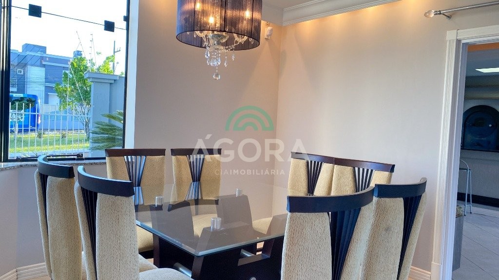 Sobrado imponente semi-mobiliado de 340m² privativos, 4 (quatro) dormitórios sendo 1 (uma) suíte master com amplo closet, sacada e banheira de hidromassagem, sala de estar com lareira, sala de jantar, cozinha mobiliada, espaço gourmet com churrasqueira e forno à lenha, amplo espaço de lazer com quadra poliesportiva e piscina com aquecimento solar. Imóvel com poço artesiano.
