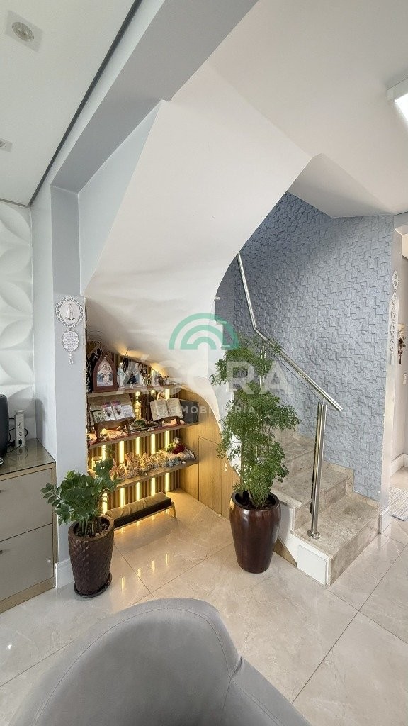 Sobrado em condomínio de 259 m² de área privativa, com 4 (quatro) dormitórios, sendo 2 (duas) suítes, sendo 1 (uma) suíte master, living amplo com cozinha integrada, lavabo. Sótão com lareira, sala de tv, três escritórios e despensa mobiliados, amplo espaço externo com piscina aquecida, hidromassagem, cascata e fechamento em vidro retrátil. Espaço gourmet com churrasqueira rotativa, grelha, forno e fogão a lenha, chapa vitroceramica. Aberturas em pvc com tela mosqueteira, pisos porcelanato e laminado de ótima qualidade. Ficam todos os móveis planejados, luminárias e 7 (sete) splits. Possui vaga coberta para 3 (três) carros. Condomínio com infraestrutura completa com academia, piscina adulto e infantil, salão de festas, quadra esportiva, quiosque e playground. Localizado na av açucena, a 4 minutos do parkshopping.