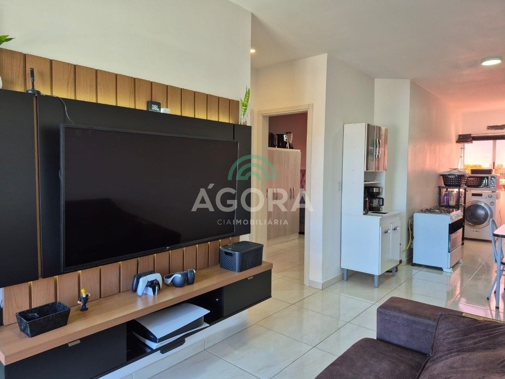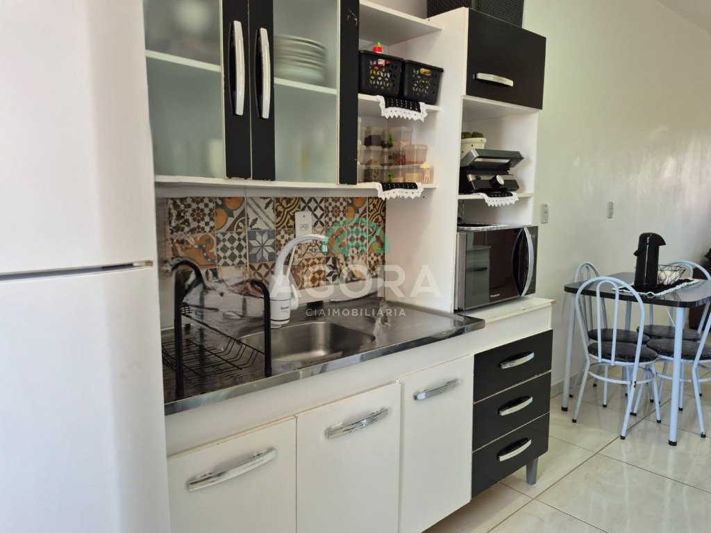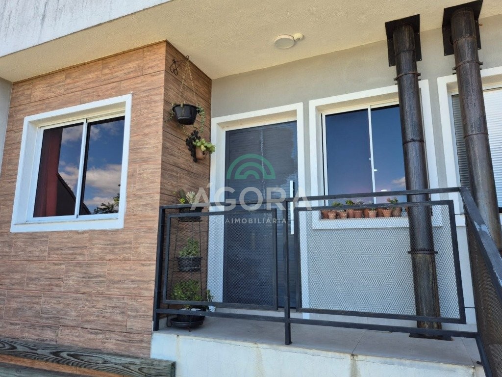 Apartamento de 53m² privativos, com 2 (dois) dormitórios, banheiro social, sala com lareira, cozinha com churrasqueira, área de serviço integrada, espera para água quente e esperas para split e vagas para 2 (dois) carros. O condomínio possui jardim e medidores de água e gás individuais. Localizado próximo a praças e diversos comércios locais.