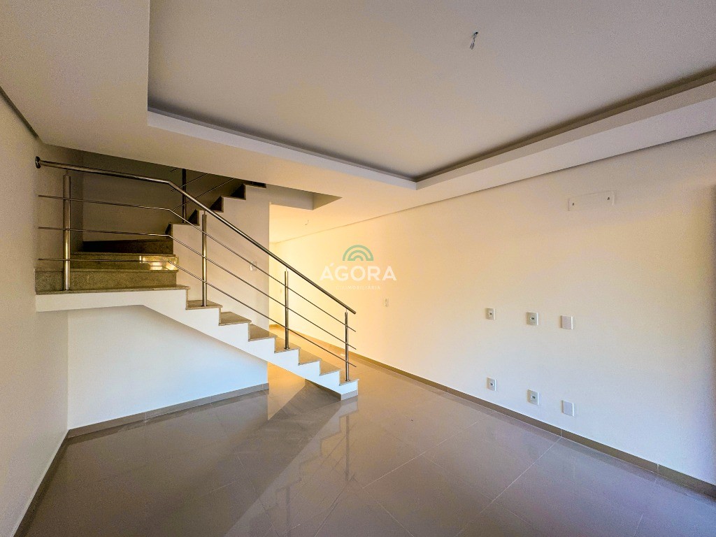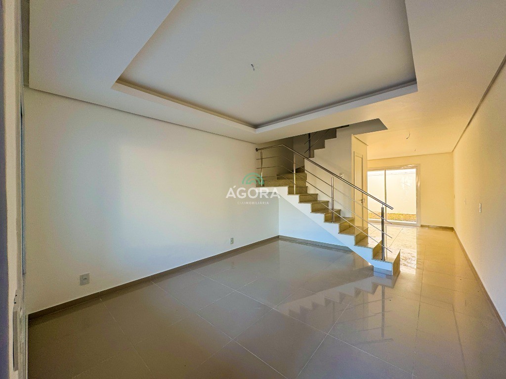 Ágora Cia Imobiliária vende: Sobrado de 104m² privativos, com 2 (dois) dormitórios, sendo 2 (duas) suítes, sala de estar e jantar integradas, cozinha estilo americana, lavabo, churrasqueira, espera para ar condicionado split, pátio nos fundos e vaga para 2 (dois) carros. Localizado no bairro São José.
