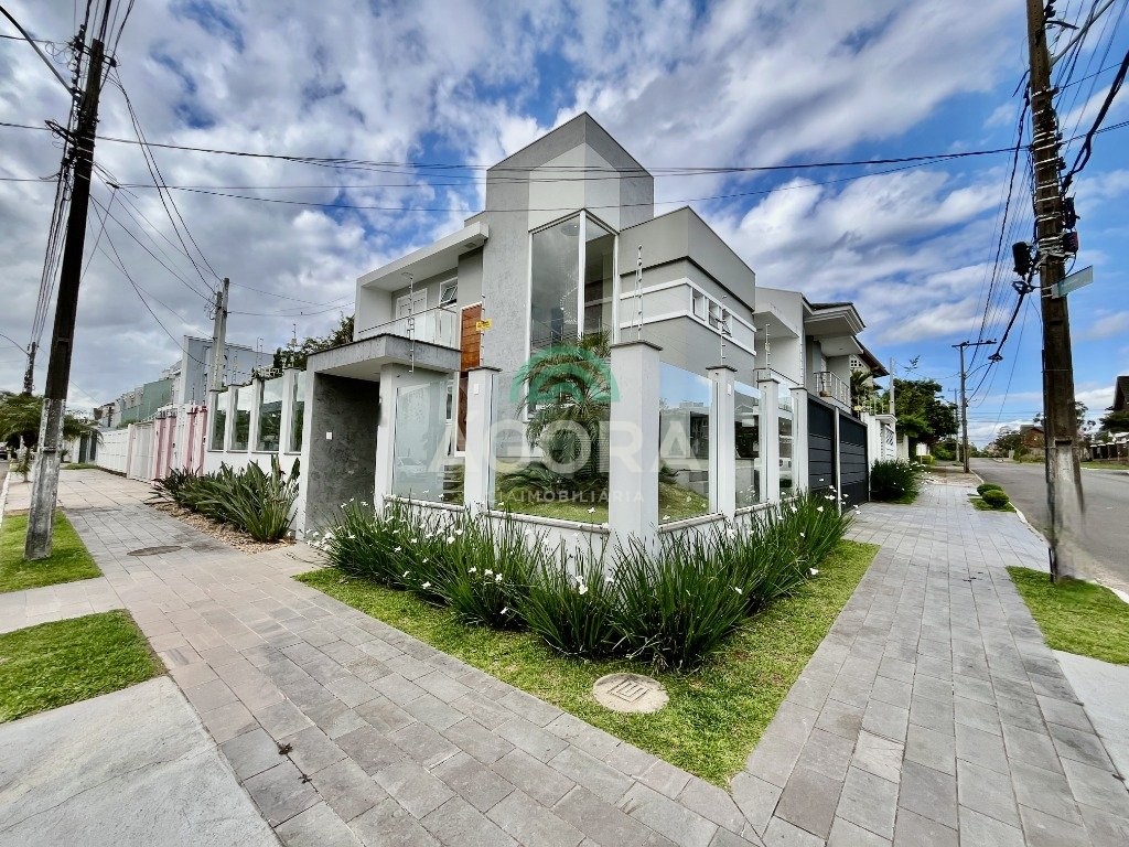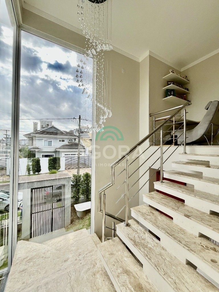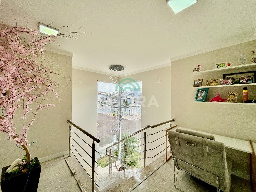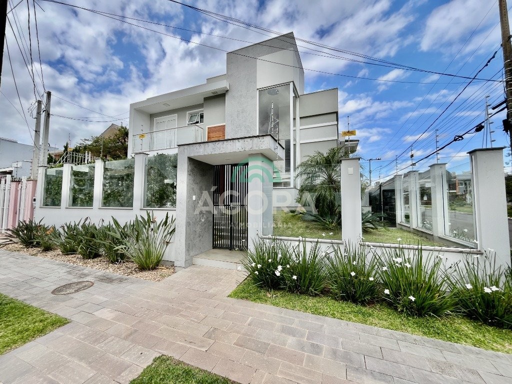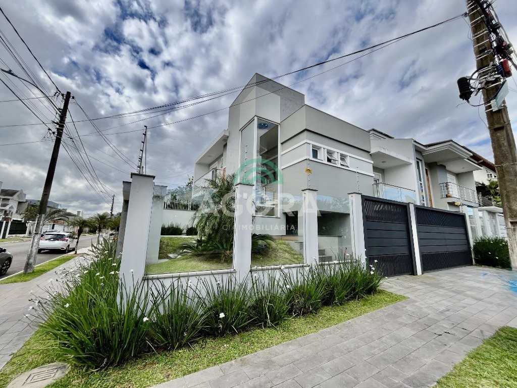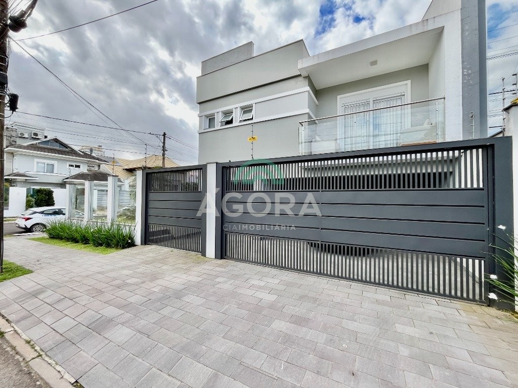 Excelente sobrado de esquina de 216m² de área construída e 96m² de pátio ou área descoberta. 3 (três) amplas suítes, sendo 1 (uma) master com sacada, espaço de closet e banheira de hidromassagem. Living totalmente integrado e amplo, com lareira, cozinha americana com opção de ilha;, porcelanato acetinado nas áreas sociais, escada em travertino e aço inox polido junto à vidro panorâmico, mezanino com especial espaço para home office com iluminação natural, sancas, rebaixos e molduras em gesso diferenciados e banheiros com revestimentos em porcelanato 3d. Laminado em todas as suítes, água quente em todos os pontos, esperas completas para splits, janelas em pvc com persianas automatizadas (controle remoto) porta principal elevada e pivotante, em madeira, com fechadura digital, churrasqueira, muros em vidro temperado e gradis galvanizados e confortável garagem para 3 (três) carros lado a lado. Em frente a uma tranquila praça de um dos melhores bairros da cidade.