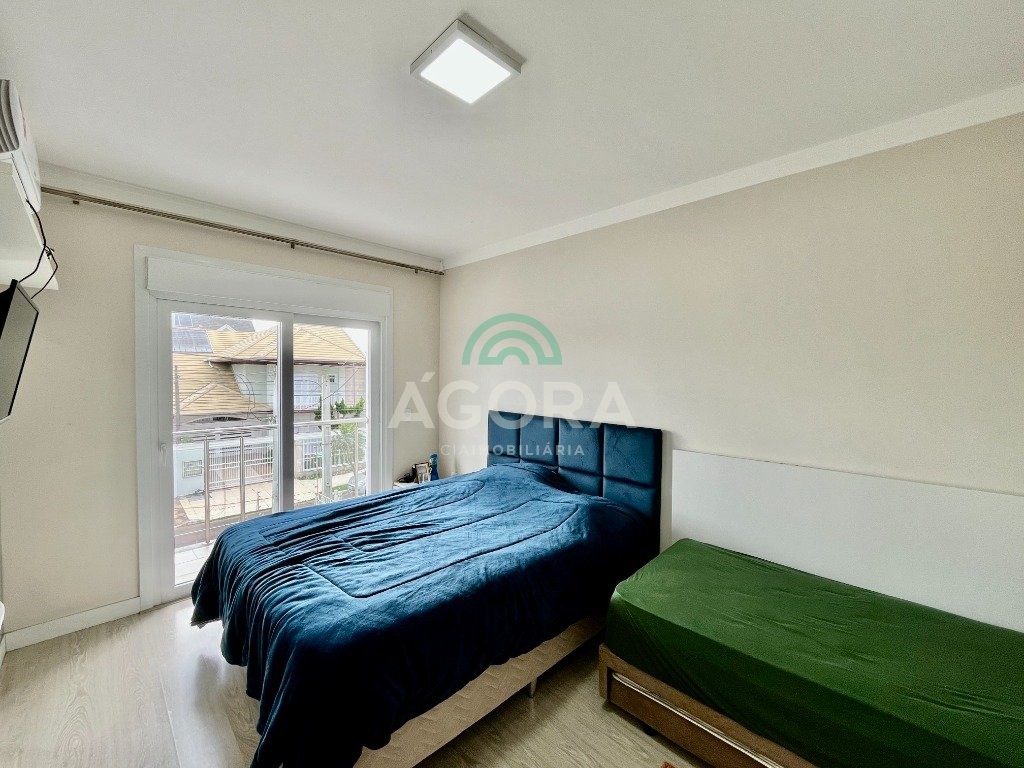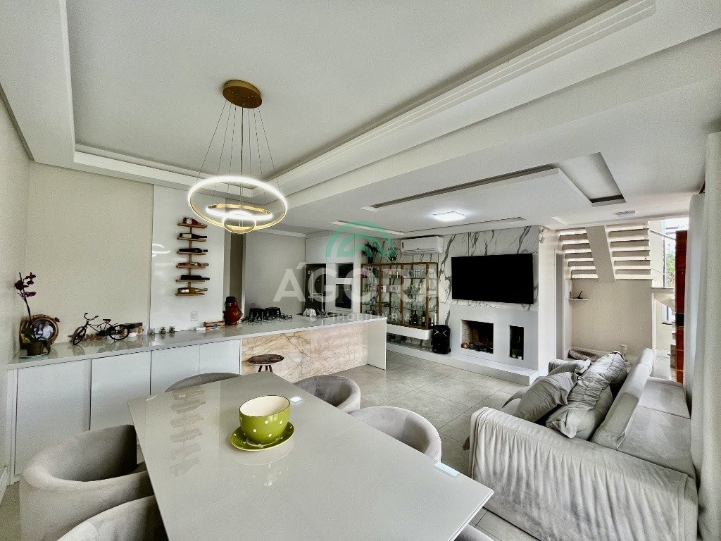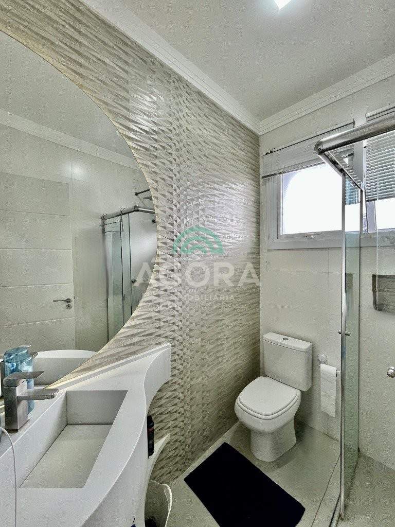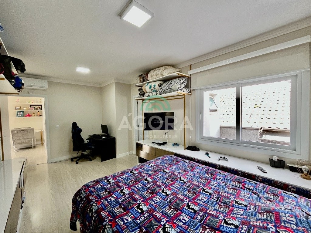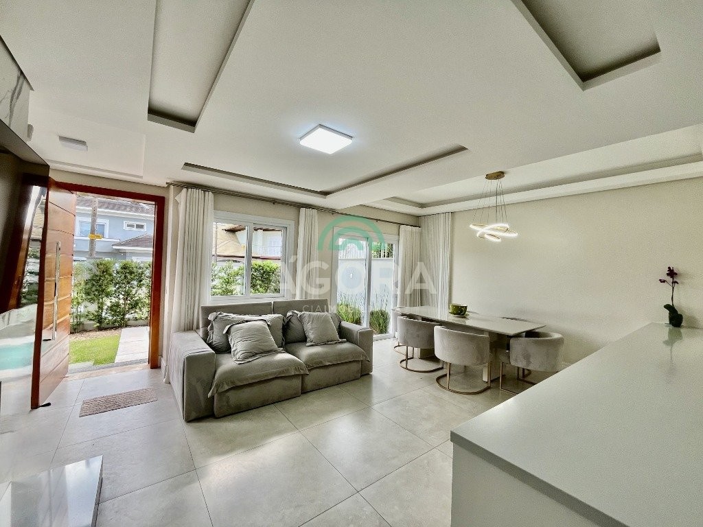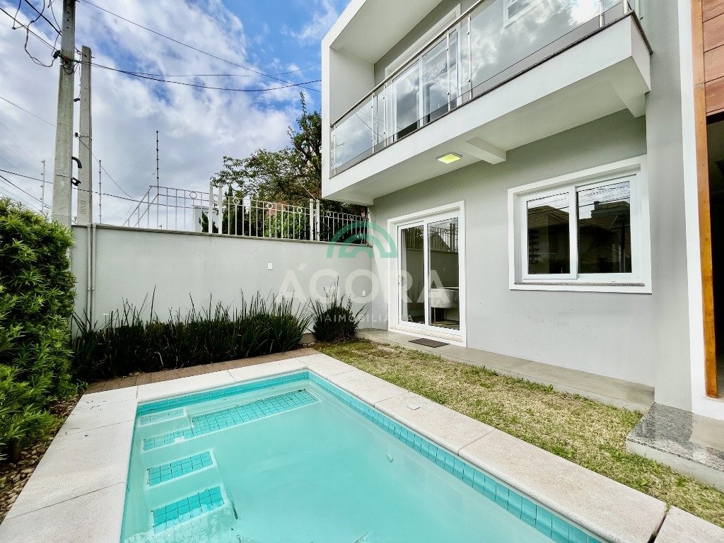 Excelente sobrado de esquina de 216m² de área construída e 96m² de pátio ou área descoberta. 3 (três) amplas suítes, sendo 1 (uma) master com sacada, espaço de closet e banheira de hidromassagem. Living totalmente integrado e amplo, com lareira, cozinha americana com opção de ilha;, porcelanato acetinado nas áreas sociais, escada em travertino e aço inox polido junto à vidro panorâmico, mezanino com especial espaço para home office com iluminação natural, sancas, rebaixos e molduras em gesso diferenciados e banheiros com revestimentos em porcelanato 3d. Laminado em todas as suítes, água quente em todos os pontos, esperas completas para splits, janelas em pvc com persianas automatizadas (controle remoto) porta principal elevada e pivotante, em madeira, com fechadura digital, churrasqueira, muros em vidro temperado e gradis galvanizados e confortável garagem para 3 (três) carros lado a lado. Em frente a uma tranquila praça de um dos melhores bairros da cidade.