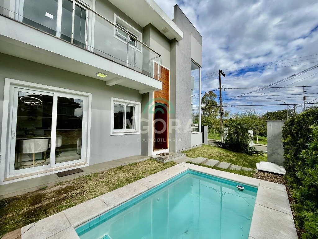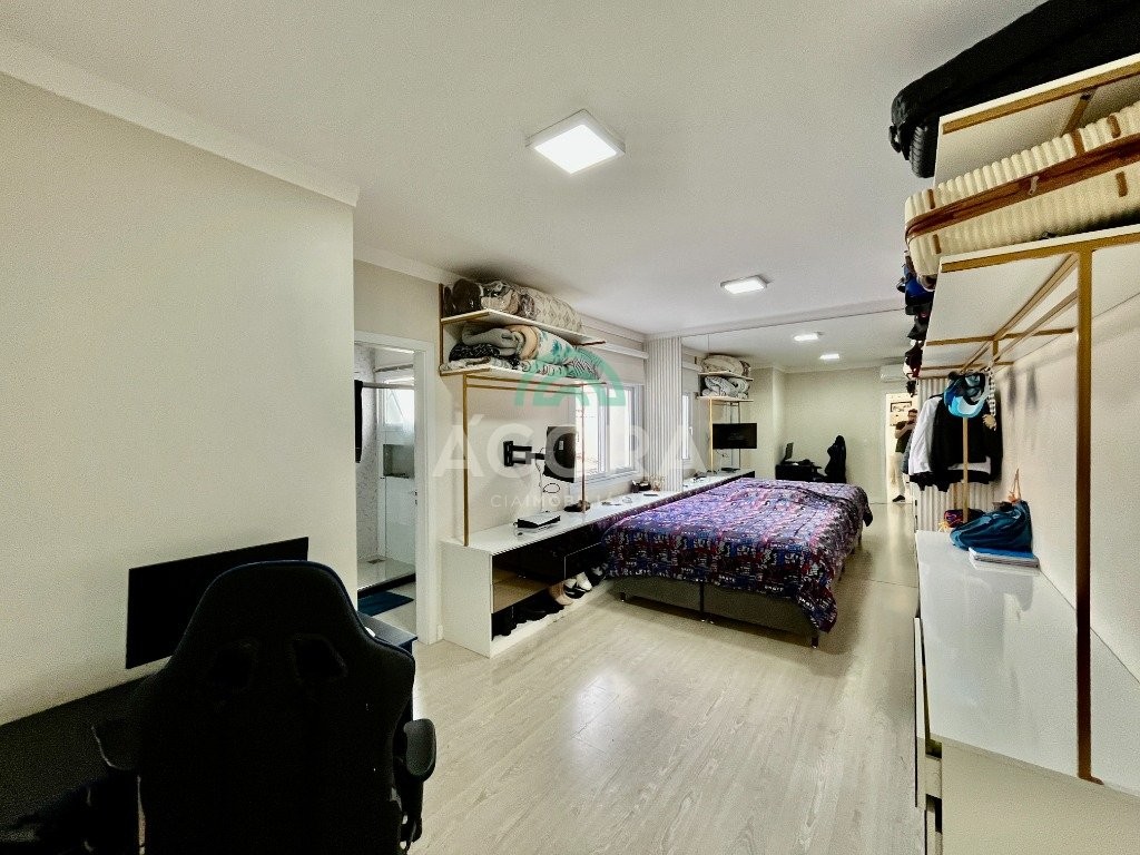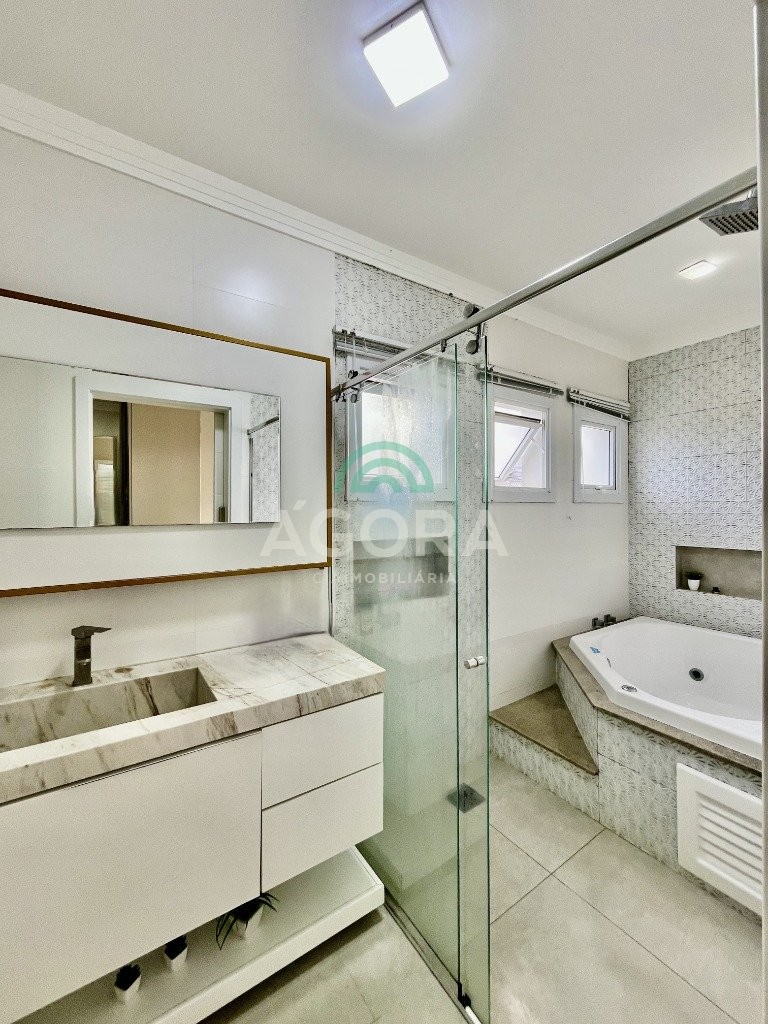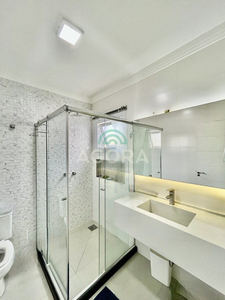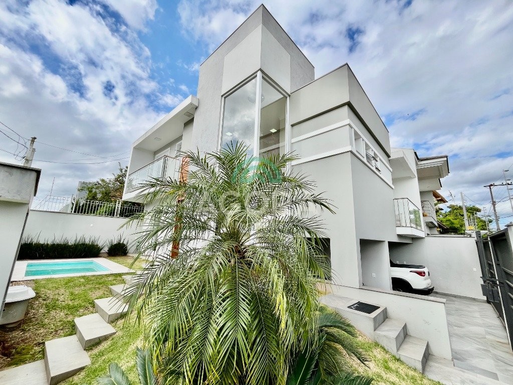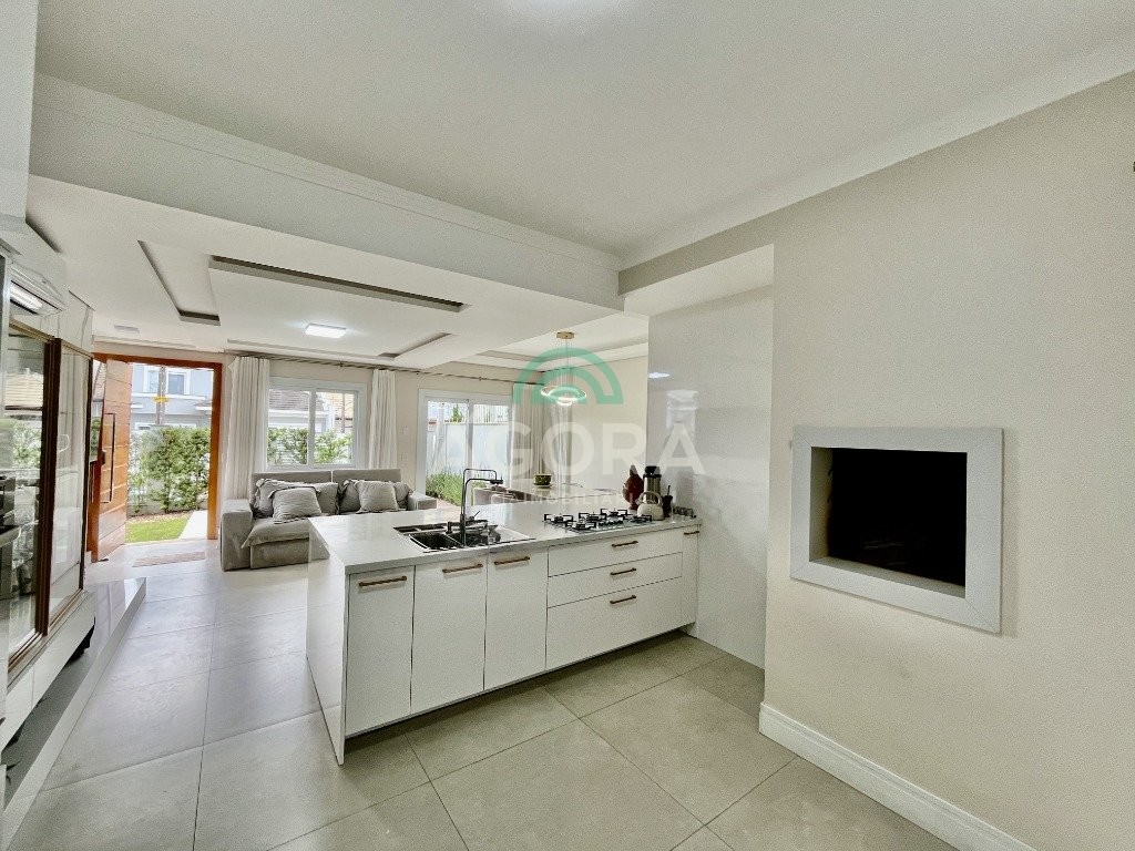 Excelente sobrado de esquina de 216m² de área construída e 96m² de pátio ou área descoberta. 3 (três) amplas suítes, sendo 1 (uma) master com sacada, espaço de closet e banheira de hidromassagem. Living totalmente integrado e amplo, com lareira, cozinha americana com opção de ilha;, porcelanato acetinado nas áreas sociais, escada em travertino e aço inox polido junto à vidro panorâmico, mezanino com especial espaço para home office com iluminação natural, sancas, rebaixos e molduras em gesso diferenciados e banheiros com revestimentos em porcelanato 3d. Laminado em todas as suítes, água quente em todos os pontos, esperas completas para splits, janelas em pvc com persianas automatizadas (controle remoto) porta principal elevada e pivotante, em madeira, com fechadura digital, churrasqueira, muros em vidro temperado e gradis galvanizados e confortável garagem para 3 (três) carros lado a lado. Em frente a uma tranquila praça de um dos melhores bairros da cidade.