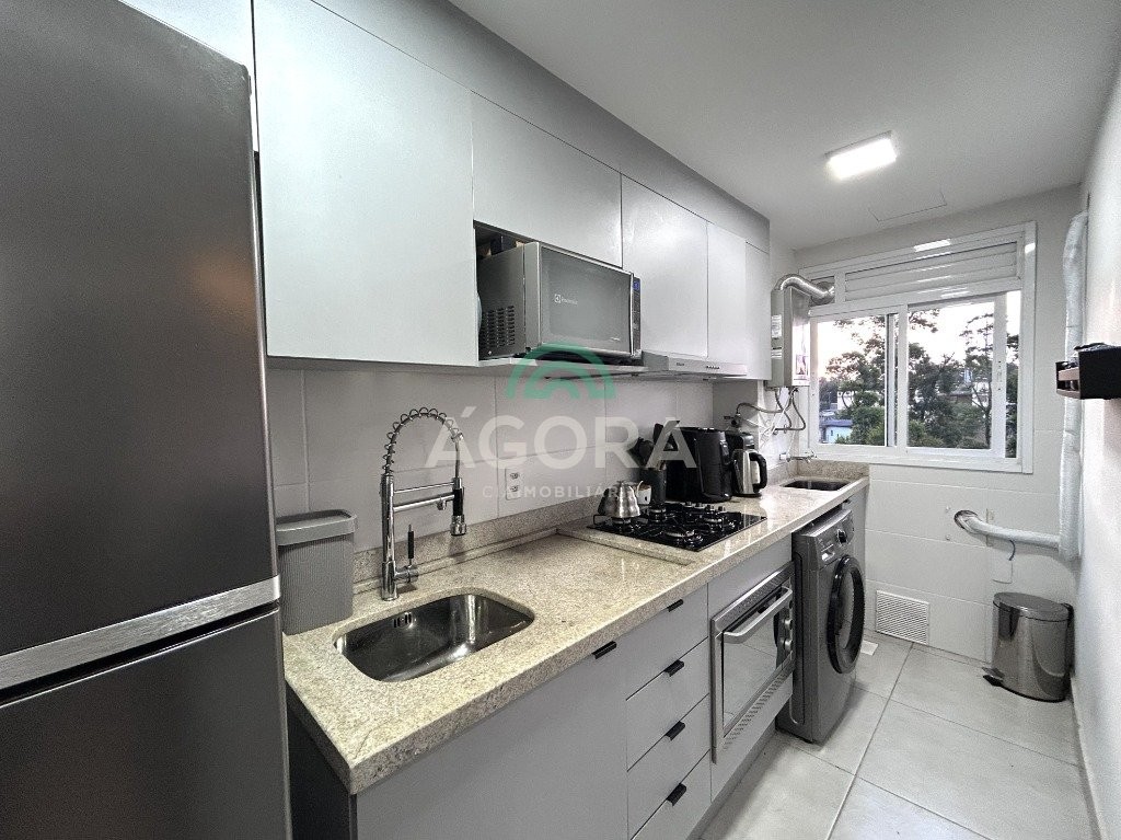 Ágora Cia Imobiliária vende: Excelente apartamento com 69m2; 2 (dois) dormitórios; Living para 2 (dois) ambientes com cozinha integrada; Sacada com churrasqueira; Rebaixo em gesso, Semimobiliado, Permanece no imóvel todos os móveis planejados.