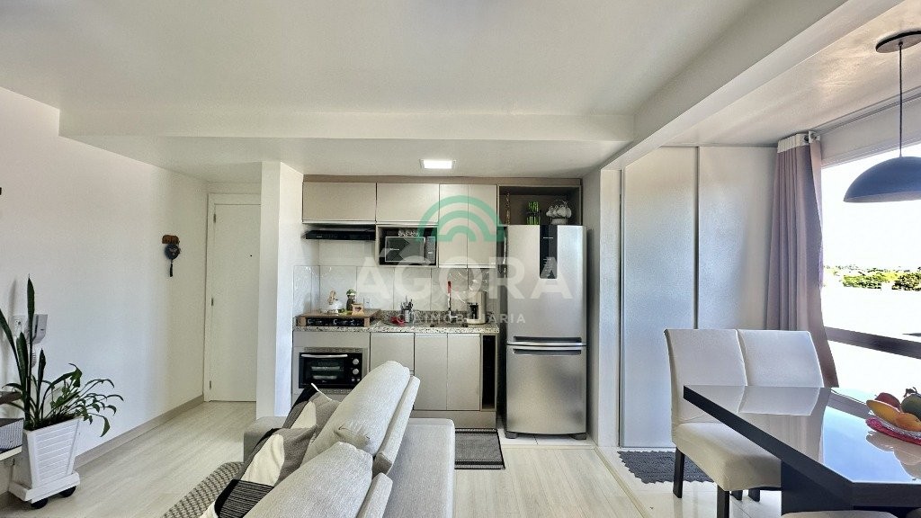 Ágora Cia Imobiliária vende: Apartamento de 55m² de área privativa, o imóvel conta com dois dormitórios amplos e aconchegantes, além de uma sala integrada à cozinha, que proporciona um ambiente moderno e funcional para o dia a dia. A área de serviço possui churrasqueira, criando um espaço perfeito para receber amigos e familiares sem abrir mão da comodidade de estar em casa. Todos os ambientes possuem acabamento em porcelanato, que garante sofisticação, beleza e fácil manutenção. Para completar, o apartamento dispõe de vaga de garagem coberta, oferecendo mais segurança e praticidade para sua rotina. O condomínio conta com salão de festas e playground, ambientes ideais para celebrar momentos especiais e garantir diversão para as crianças. Localizado no bairro Estância Velha, este imóvel está próximo de escolas, comércios, transporte público e importantes vias de acesso, garantindo mobilidade e conveniência no dia a dia. Se você busca um lar que une conforto, praticidade e uma localização estratégica, este apartamento é a escolha certa. Agende sua visita e venha se encantar!