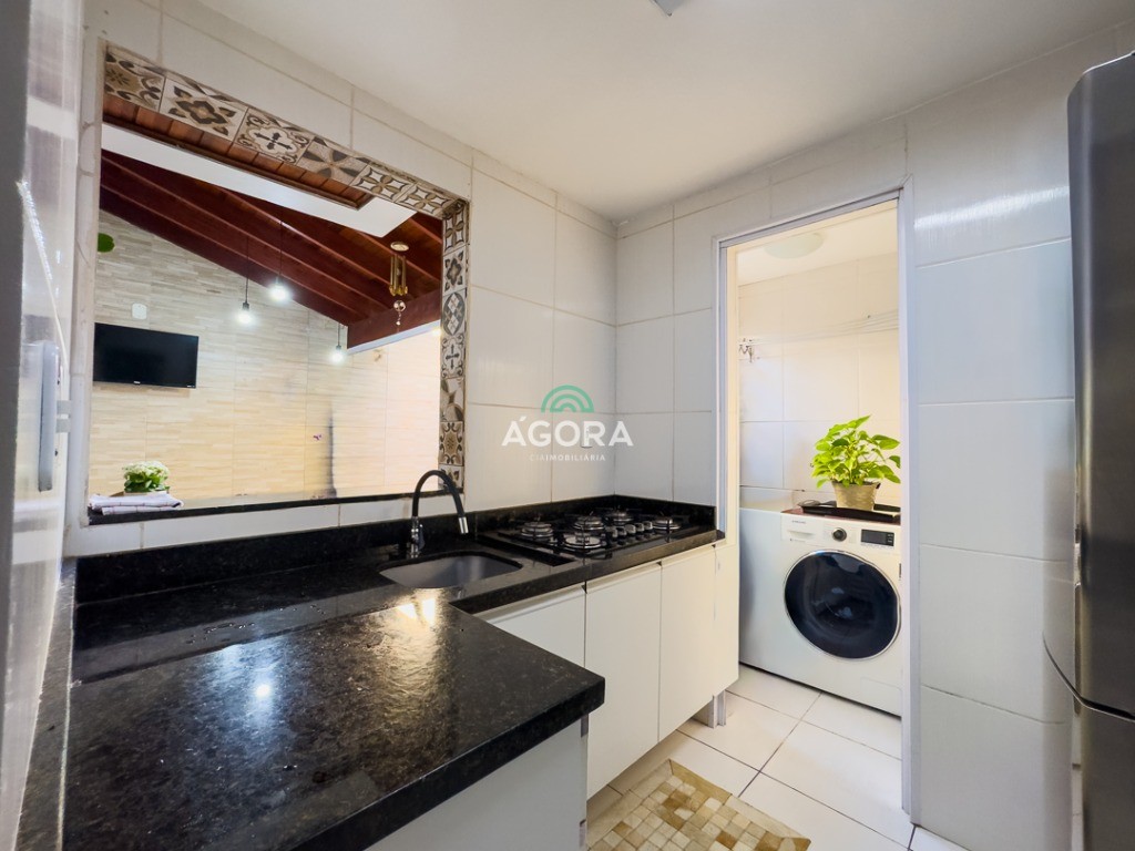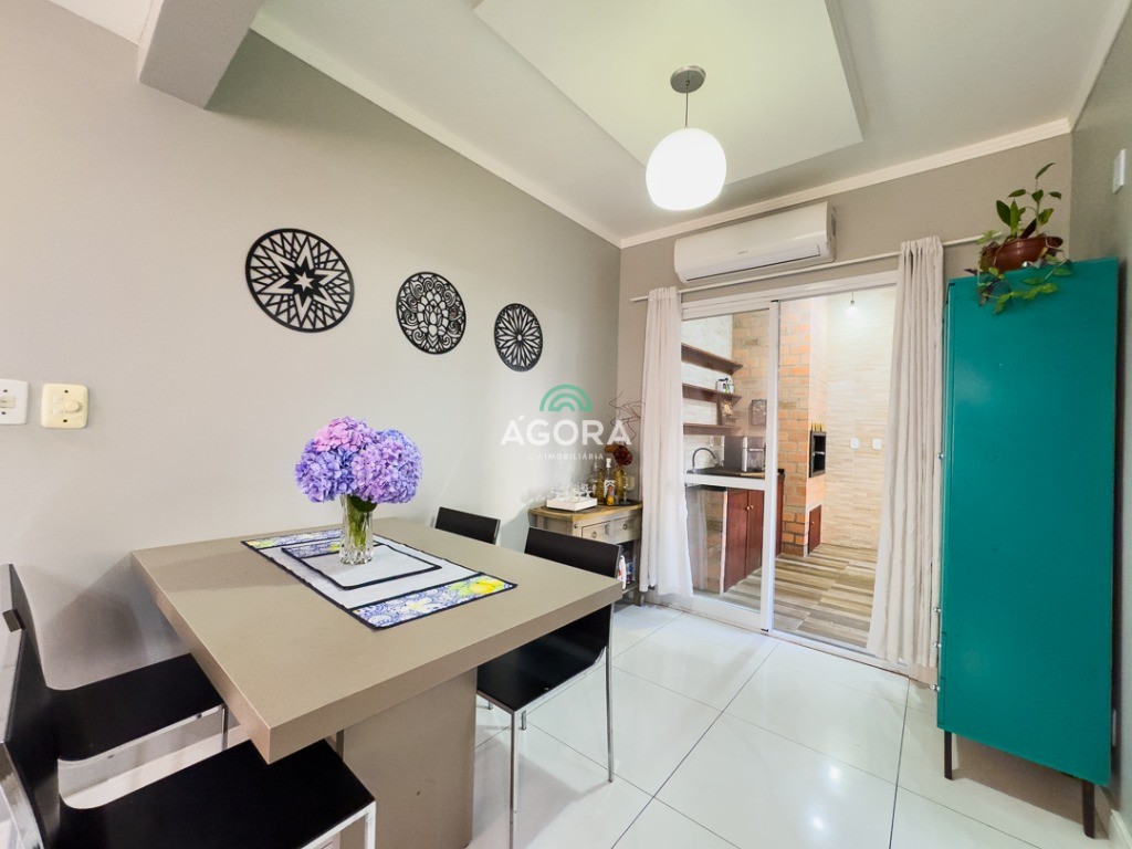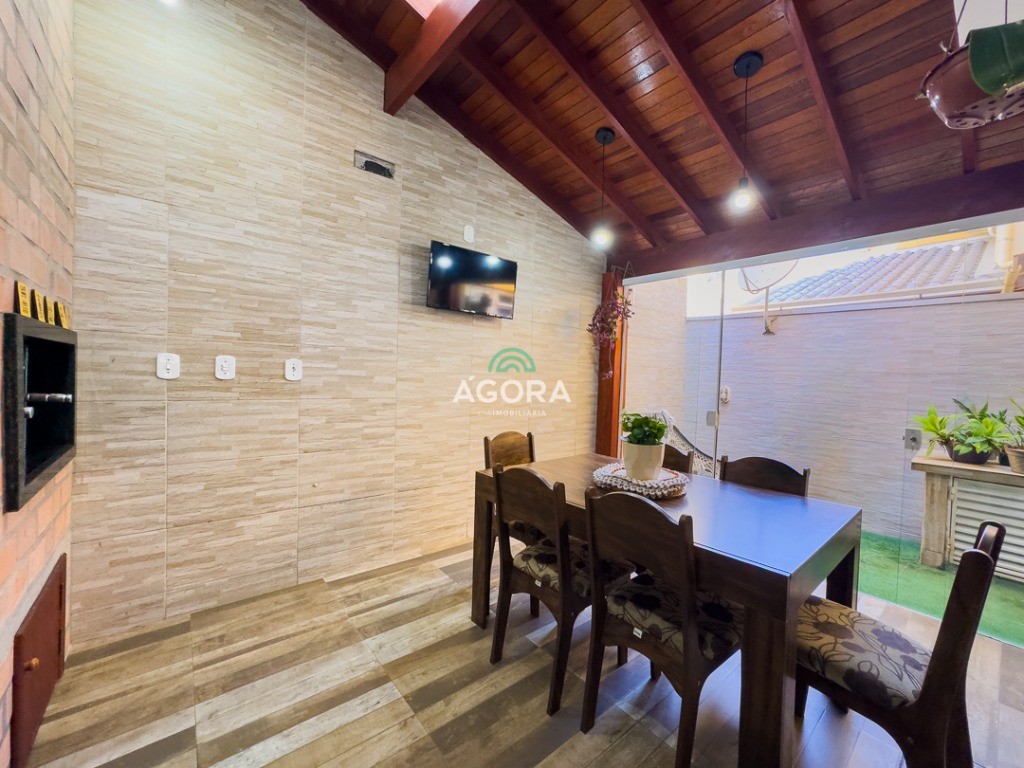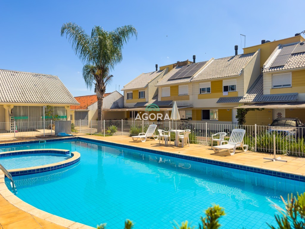 Ágora Cia Imobiliária vende: Excelente sobrado em condomínio fechado, de 134m² privativos, com 3 (três) dormitórios, living para 2 (dois) ambientes com cozinha integrada, área gourmet equipada e 2 (duas) vagas cobertas. Condomínio com infraestrutura completa. Excelente localização com rico comércio na saída do condomínio.
