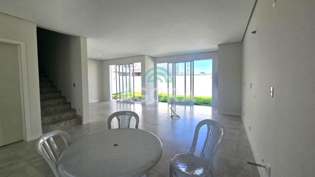 Sobrado com 3 (três) suítes, sendo a principal com banheira e sacada frontal. Este imóvel oferece conforto e privacidade para toda a família. Há ainda a opção de home office ou suíte estendida, adaptando-se facilmente ao seu estilo de vida. O térreo conta com sala de estar com lareira, cozinha e jantar integradas, proporcionando um ambiente acolhedor e fluido. Nos fundos, 1 (um) pequeno terraço integrado à sacada, churrasqueira e pátio privativo ideal para relaxar ou receber amigos. Possui lavanderia, depósito, 2 (duas) vagas de garagem cobertas e espera para carregador de carro elétrico. Acabamento impecável: revestimento em porcelanato, esperas para split em todos os ambientes, água quente e infraestrutura para energia solar. Um sobrado que une sofisticação, eficiência e conforto em cada detalhe. Sobrado moderno arquiteto **andré pacheco** e construído por **sérgio fidelis**,