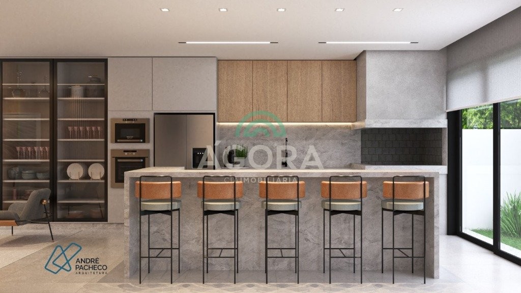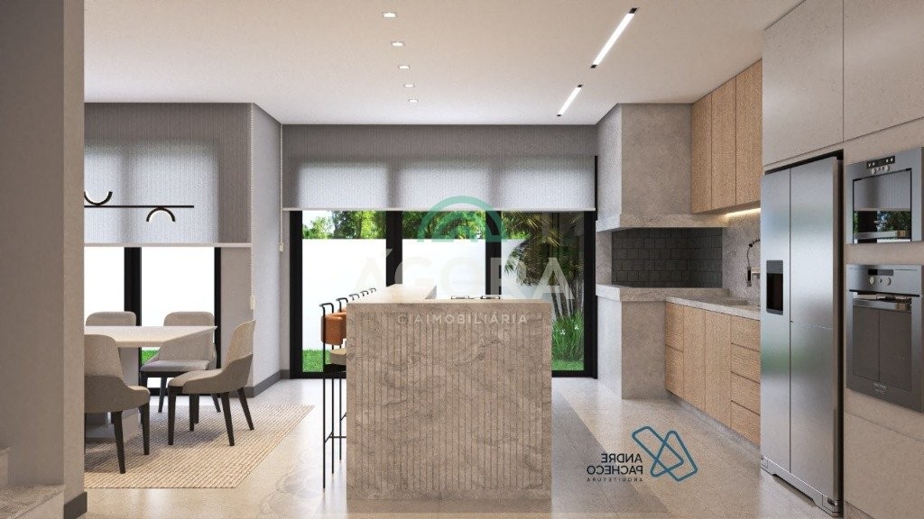 Sobrado com 3 (três) suítes, sendo a principal com banheira e sacada frontal. Este imóvel oferece conforto e privacidade para toda a família. Há ainda a opção de home office ou suíte estendida, adaptando-se facilmente ao seu estilo de vida. O térreo conta com sala de estar com lareira, cozinha e jantar integradas, proporcionando um ambiente acolhedor e fluido. Nos fundos, 1 (um) pequeno terraço integrado à sacada, churrasqueira e pátio privativo ideal para relaxar ou receber amigos. Possui lavanderia, depósito, 2 (duas) vagas de garagem cobertas e espera para carregador de carro elétrico. Acabamento impecável: revestimento em porcelanato, esperas para split em todos os ambientes, água quente e infraestrutura para energia solar. Um sobrado que une sofisticação, eficiência e conforto em cada detalhe. Sobrado moderno arquiteto **andré pacheco** e construído por **sérgio fidelis**,