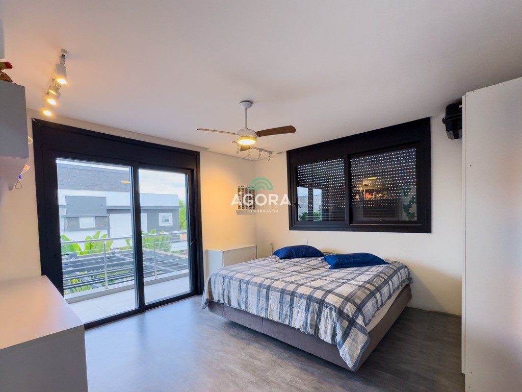Ágora Cia Imobiliária vende: Sobrado mobiliado de alto padrão em condomínio fechado com 329m² privativos, construídos em um terreno único com 17m de frente, Com 4 (quatro) dormitórios, sendo 1 (uma) suíte master com e 2 (duas) suítes tradicionais e 1 (uma) dormitório no térreo. Living integrado entre sala de estar com lareira, sala e jantar e cozinha, com pé direito duplo e acabamentos em alta qualidade. Pátio privativos aos fundos coberto com teto retrátil e piscina aquecida. Garagem para 4 (quatro) veículos, sendo 2 (duas) vagas cobertas. O imóvel permanece mobiliado, com 4 aparelhos de splits e Juncker. Condomínio com infraestrutura completa. Ambiente seleto e tranquilo, com segurança 24h. Fácil acesso e próximo a todo o comércio local.