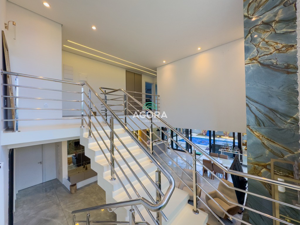 Ágora Cia Imobiliária vende: Sobrado em condomínio fechado com 316m² privativos e um projeto contemporâneo com acabamento em alto padrão. Com 4 (quatro) suítes, sendo 1 (uma) suíte no térreo e a Suíte Master com 43m² privativos com vista para a área verde do condomínio, TODOS com persianas automatizadas. Espera para elevador Living integrado com 3 (três) ambientes Pátio privativo aos fundos com piscina em concreto e lavabo externo. Projeto pensado para facilitar sua dia a dia, com automação de iluminação com Alexa e Jardim com irrigação Condomínio com infraestrutura completa, fácil acesso e próximo a todo o comércio local.