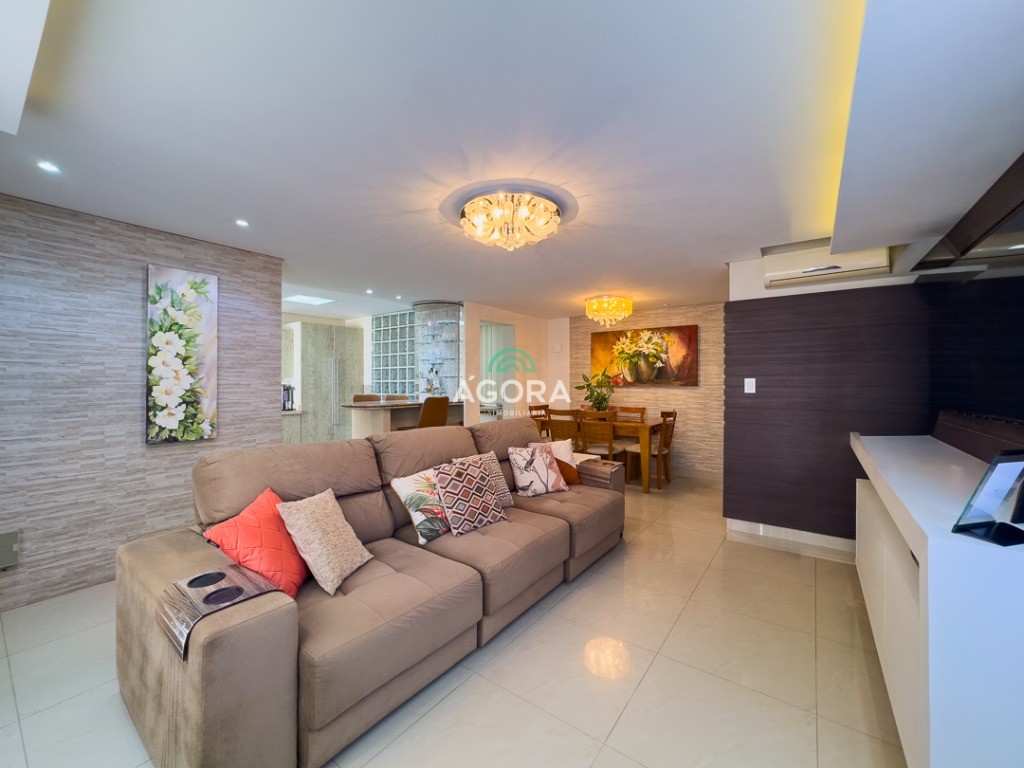 Ágora Cia Imobiliária vende: Sobrado de 220m² de área privativa, com 3 (três) dormitórios, sendo 1 (uma) suíte, lavabo, banheiro social, sala de estar e jantar. Área externa com piscina, área gourmet com churrasqueira, lavanderia, banheiro e 1 (um) deposito. Garagem coberta para 3 (três) veículos. Ficam os moveis planejados: Cozinha, sala de estar, sala de jantar, banheiros, lavabo e dormitórios.
