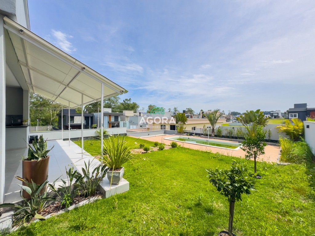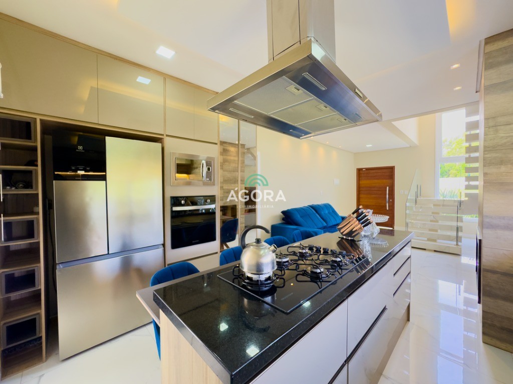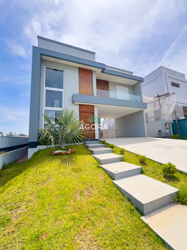 Ágora Cia Imobiliária Vende: Belíssimo sobrado de 295m² com 3 (três) suítes, sendo 1 (uma) suíte Master com sacada e Closet. Hall de entrada, escritório térreo, sala de estar, jantar e cozinha integrados com lareira e churrasqueira, varanda, 2 (duas) sacadas, área de serviço e despensa. Pátio amplo nos fundos e garagem coberta para 2 (dois) carros lado a lado. Aberturas automatizadas nas suites. Construção de alto padrão. Usando o que tem de melhor em materiais de estrutura, revestimento e acabamentos. Sobrado de excelente qualidade e muito espaçoso.
