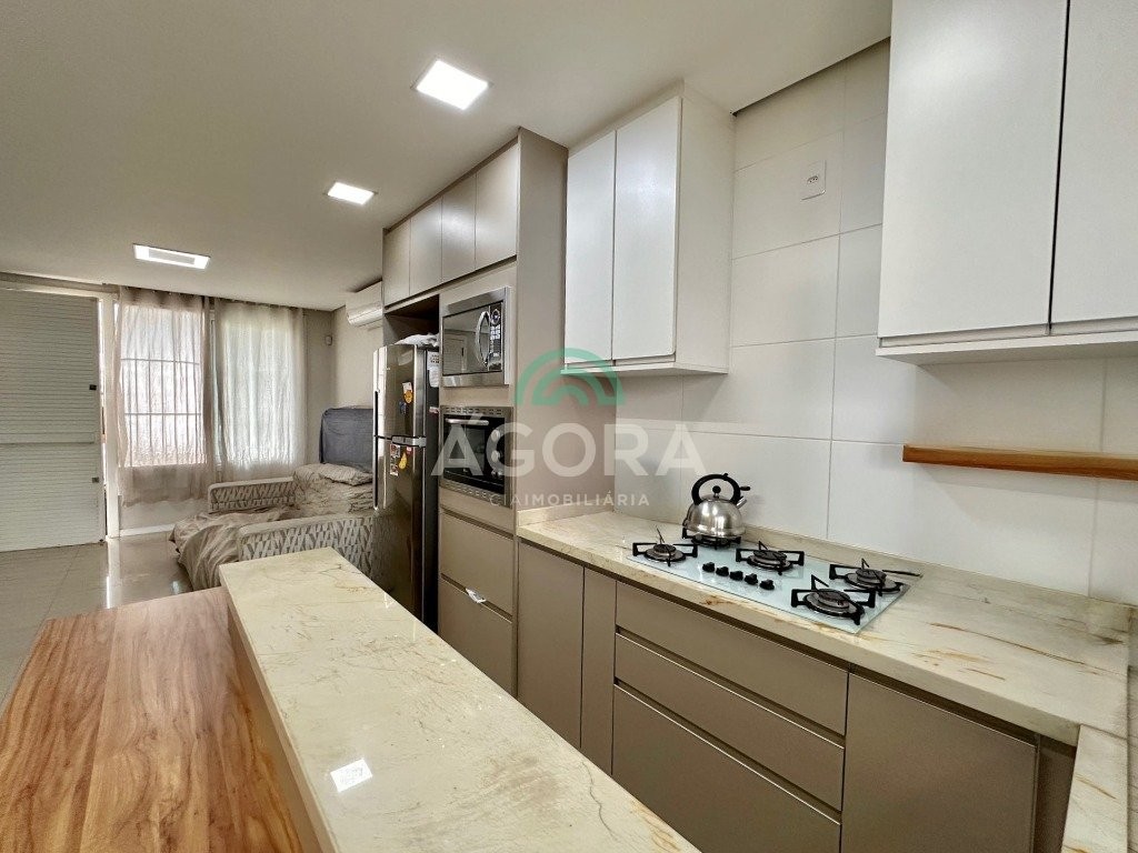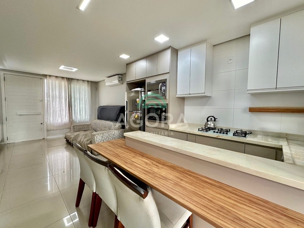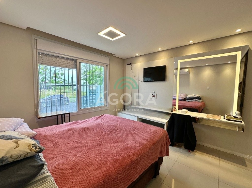 Ótima casa térrea de 95,29m² privativos, com 3 (três) dormitórios, sendo 1 (uma) ampla suíte, sala de estar/jantar e cozinha integradas, com móveis refinno, água quente, cozinha e banheiros, lavanderia, pátio com churrasqueira e vaga de garagem para 2 (dois) carros. Excelente localização, próximo a mercados, escolas e demais serviços. 8 (oito) minutos do park shopping canoas