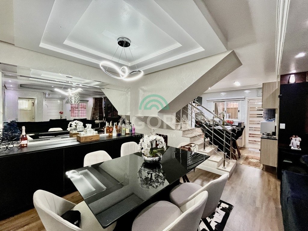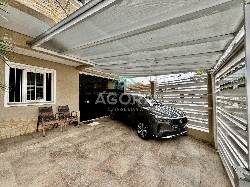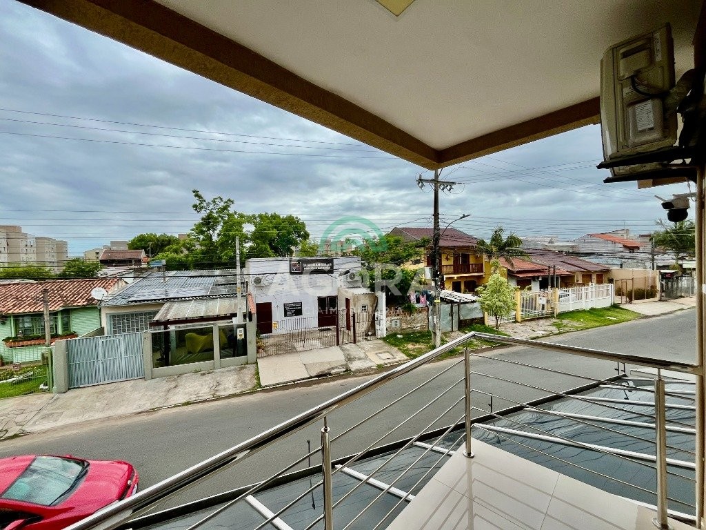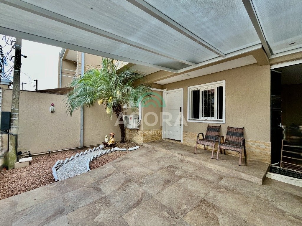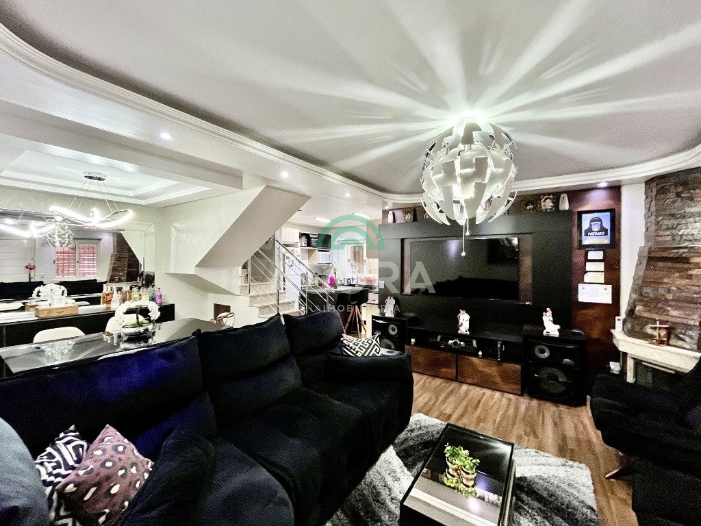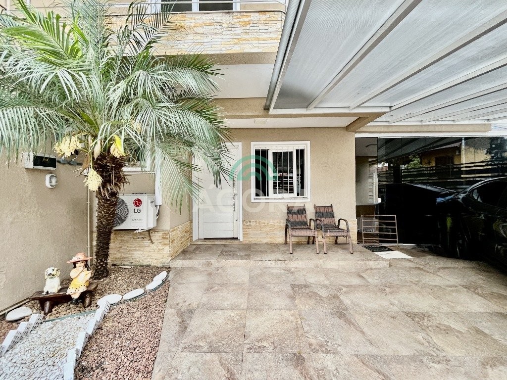 Sobrado de esquina com excelente posição solar e ventilação, de 164 m² privativos. Possui 3 (três) dormitórios, sendo 1 (uma) suíte com closet, e sacada. Living integrado entre sala de estar com lareira, sala de jantar e cozinha. 1 (um) banheiro social e 1 (um) lavabo. Pátio fechado com espaço gourmet completo e garagem coberta para 2 (dois) veículos. Permanece no imóvel todos os móveis fixos de excelente qualidade e acabamento e aparelhos de ar condicionado. O imóvel possui também placas fotovoltaicas. Cerca elétrica e câmeras. Localizado no bairro mato grande em canoas. Próximo aos principais comércios como mercados, farmácias, ferragens, postos, etc. Região de fácil acesso para br 116 e 448.
