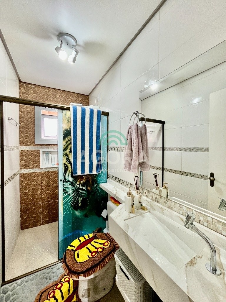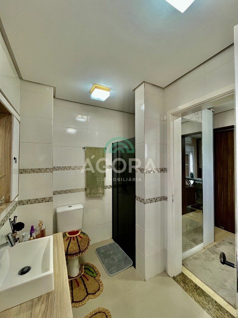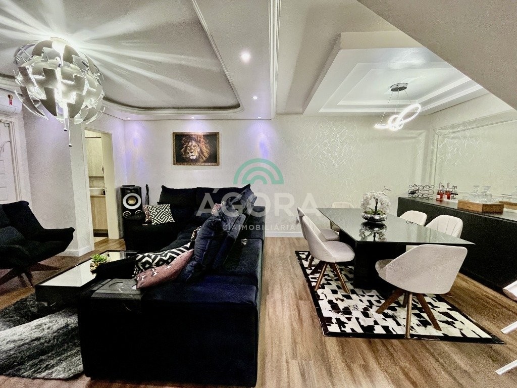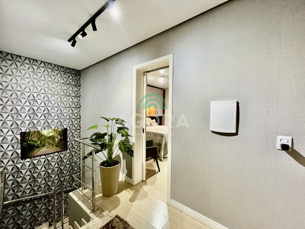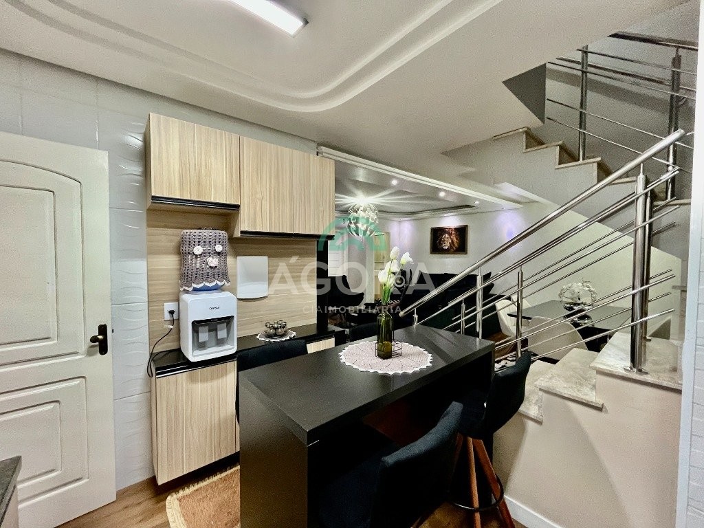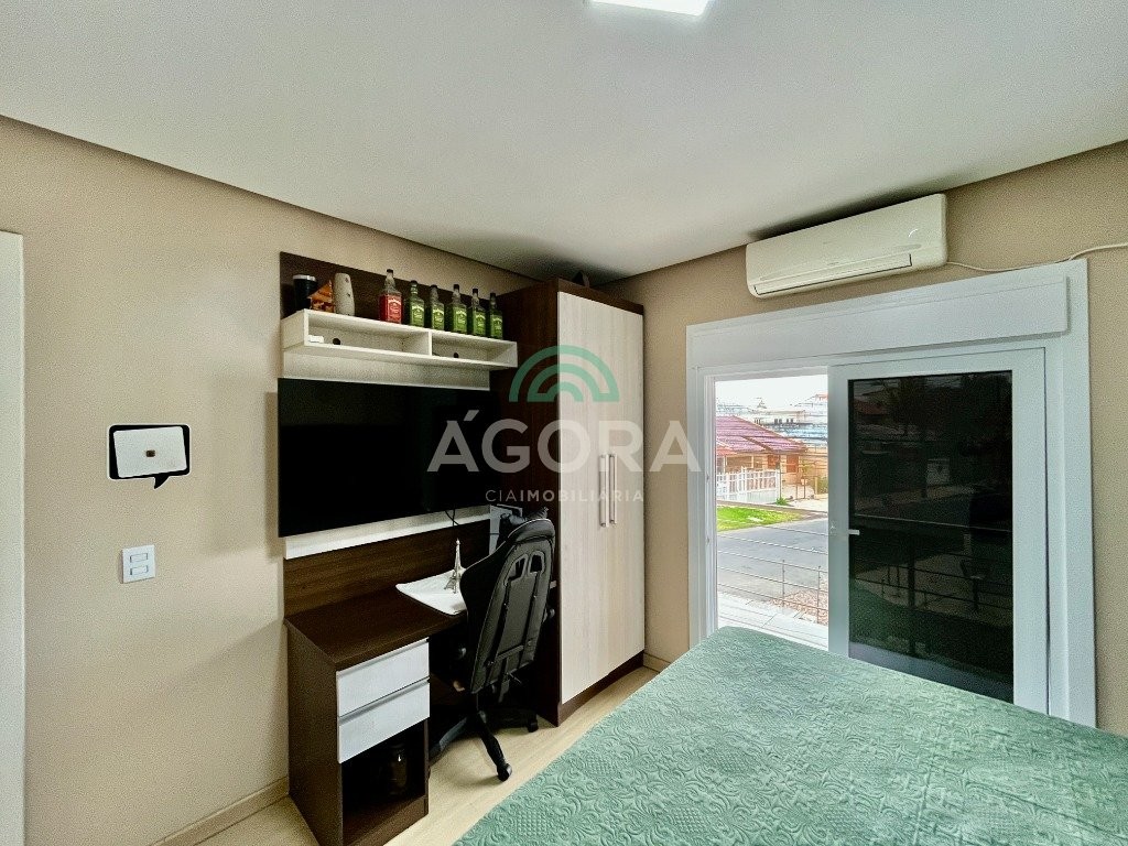 Sobrado de esquina com excelente posição solar e ventilação, de 164 m² privativos. Possui 3 (três) dormitórios, sendo 1 (uma) suíte com closet, e sacada. Living integrado entre sala de estar com lareira, sala de jantar e cozinha. 1 (um) banheiro social e 1 (um) lavabo. Pátio fechado com espaço gourmet completo e garagem coberta para 2 (dois) veículos. Permanece no imóvel todos os móveis fixos de excelente qualidade e acabamento e aparelhos de ar condicionado. O imóvel possui também placas fotovoltaicas. Cerca elétrica e câmeras. Localizado no bairro mato grande em canoas. Próximo aos principais comércios como mercados, farmácias, ferragens, postos, etc. Região de fácil acesso para br 116 e 448.