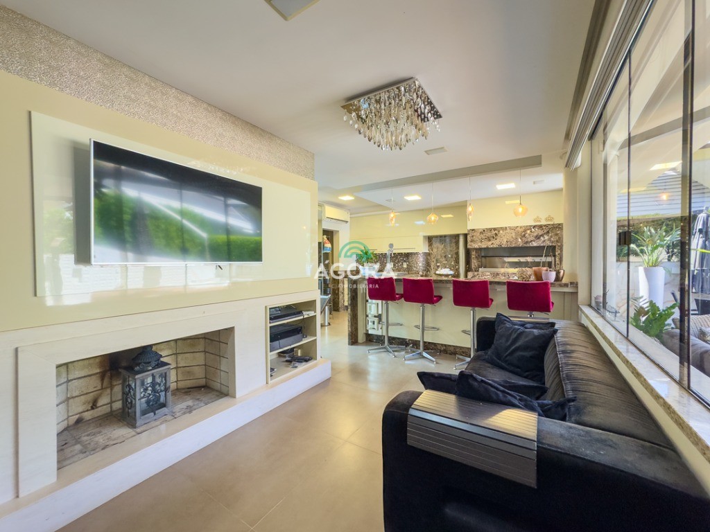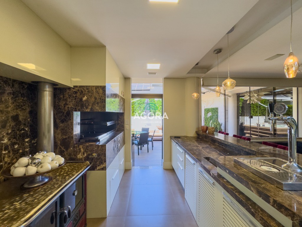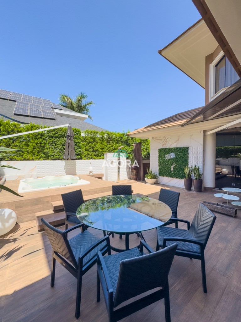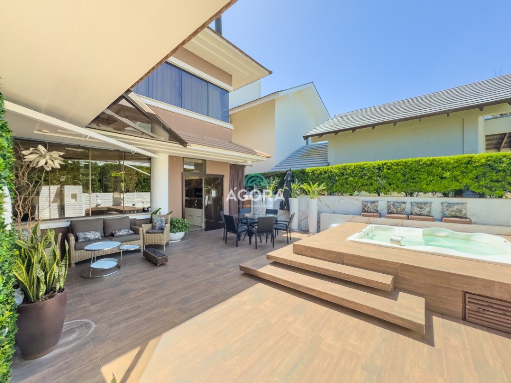 Um imóvel completo e sofisticado, contando com 3 (três) suítes, todas com closet e banheira, além de 1 (um) quarto de hóspedes e 1 (uma) dependência de empregada. No térreo, o imóvel também oferece 1 (um) escritório e 1 (um) banheiro social. A área social é ampla e integrada, com 2 (duas) salas, cozinha em ilha, espaço gourmet completo com chopeira, adega e 1 (um) aconchegante pátio aos fundos com jacuzzi. O imóvel ainda dispõe de 2 (duas) lareiras, espaço de lavanderia e elevador, garantindo conforto e praticidade em todos os ambientes. Localizado em condomínio com infraestrutura, próximo a todo o comércio local e com fácil acesso às principais vias da cidade.