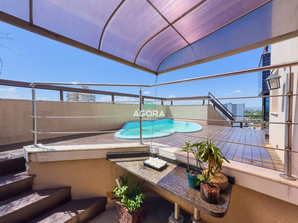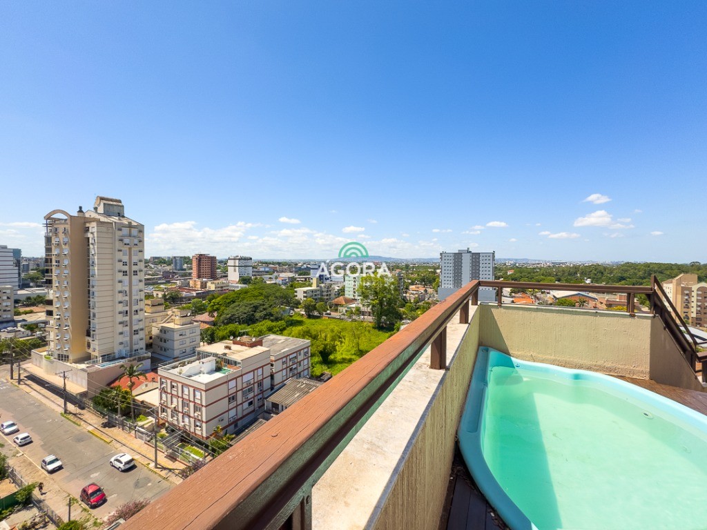 Cobertura duplex no centro de canoas, em condomínio de torre única, localizada no décimo segundo andar, com 218m² privativos e uma vista simplesmente encantadora para porto alegre. O imóvel conta com 3 (três) dormitórios, sendo 1 (uma) suíte master com closet e sacada, além de ampla área social com sacada panorâmica na sala. A cobertura dispõe ainda de 2 (duas) vagas cobertas, 1 (uma) piscina privativa e mais 2 (duas) sacadas, totalizando 3 (três) sacadas que valorizam a iluminação natural e a experiência de morar bem, inclusive com a vista noturna dos aviões pousando no aeroporto. Um apartamento amplo, exclusivo e diferenciado, ideal para quem busca conforto, espaço amplo e excelente localização no coração da cidade de canoas.