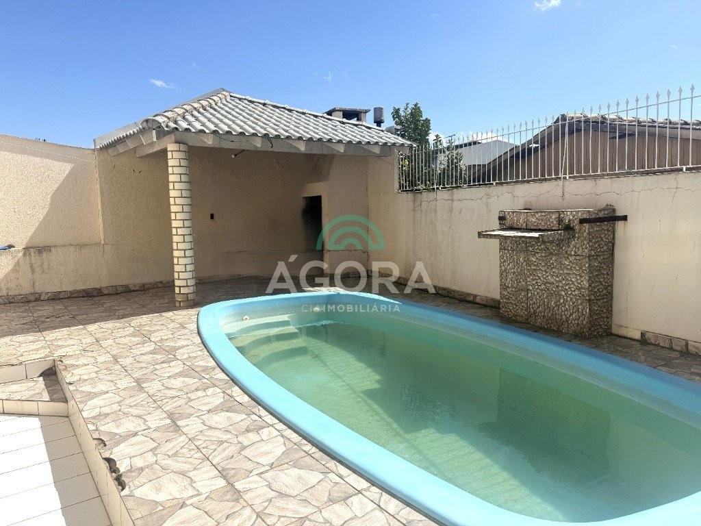 Sobrado de 190m² privativos, com 3 (três) dormitórios, 2 (duas) vagas de garagem, 2 (dois) banheiros, área de serviço, banheiro auxiliar, banheiro social, cozinha, lareira, piscina, sacada e sala de jantar.
