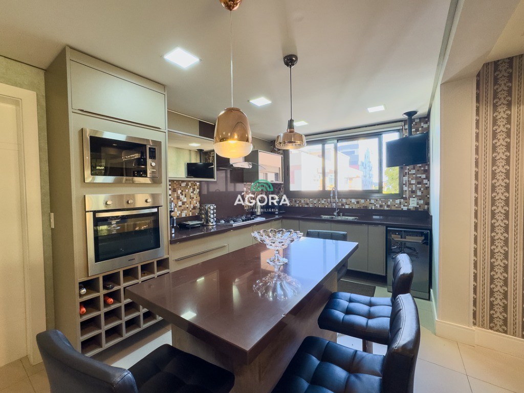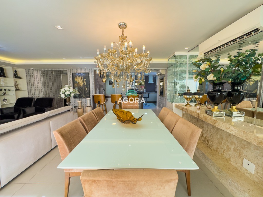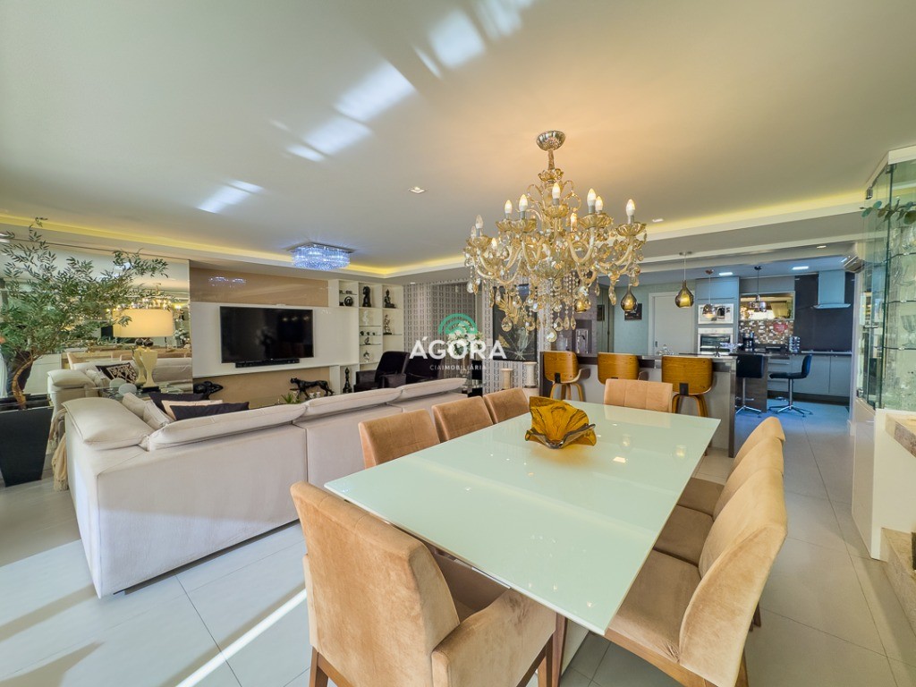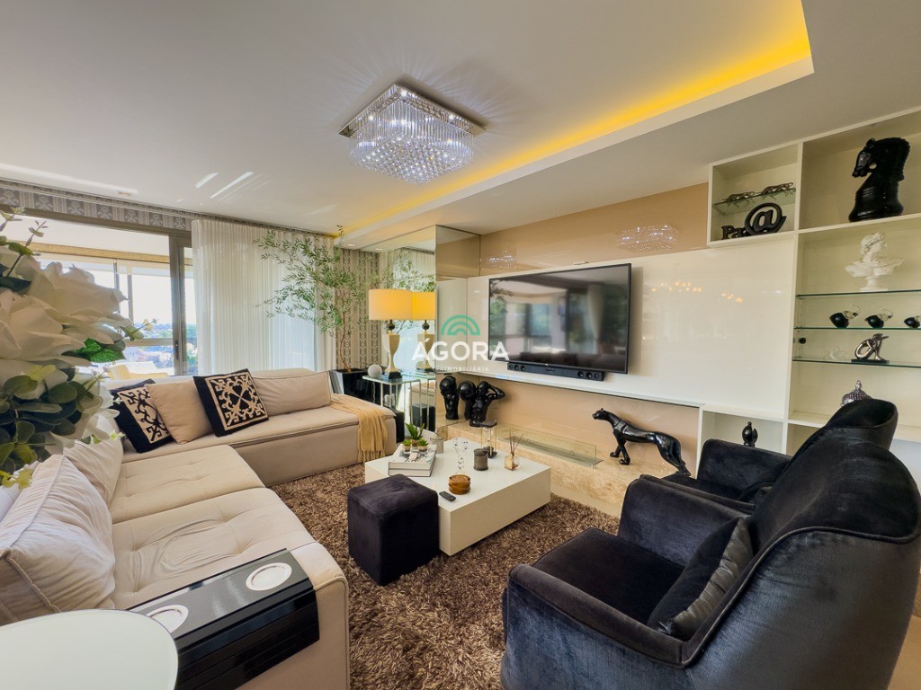 Apartamento de alto padrão, medindo 166,49m² privativos, sendo 3 (três) suítes, living estendido sala de estar e jantar, cozinha com churrasqueira, área de serviço, lavabo, sacada fechada com churrasqueira e vagas coberta para 6 (seis) carros. Imóvel fica mobiliado. Condomínio disponibiliza de espaço gourmet , 2 (dois) salões de festas, piscina , sala fitness e espaço kids.