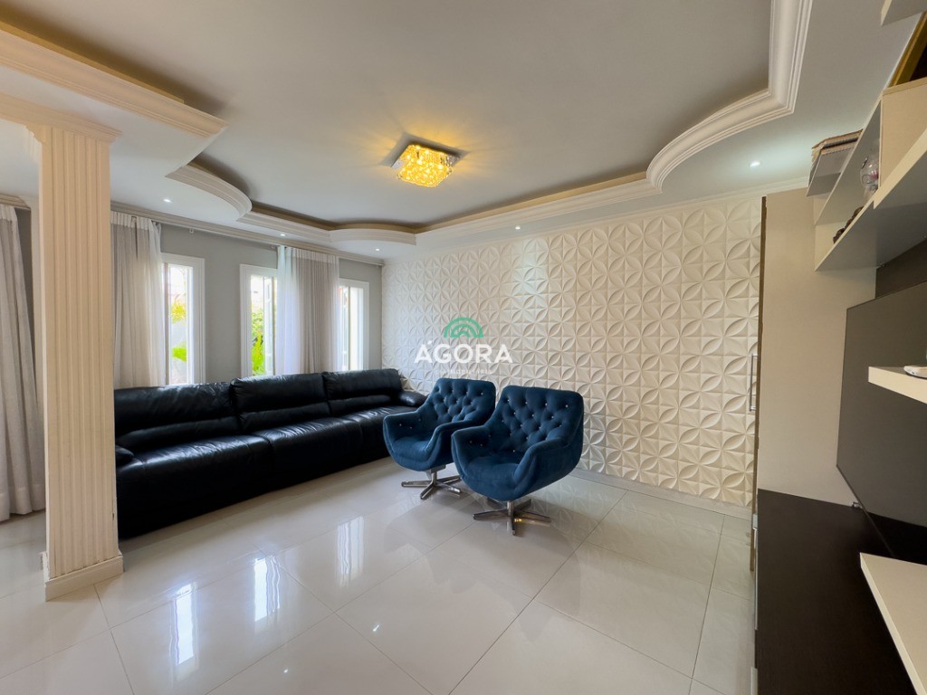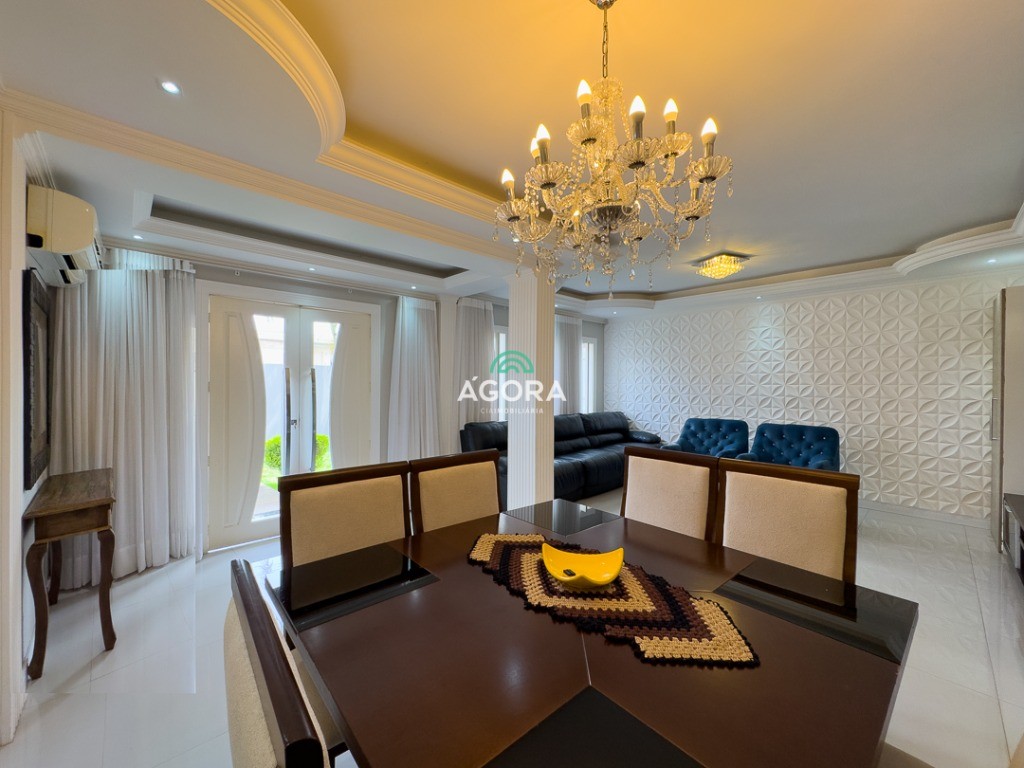 Sobrado semi-mobiliado em condomínio fechado, com 3 suítes e 3 vagas de garagem.