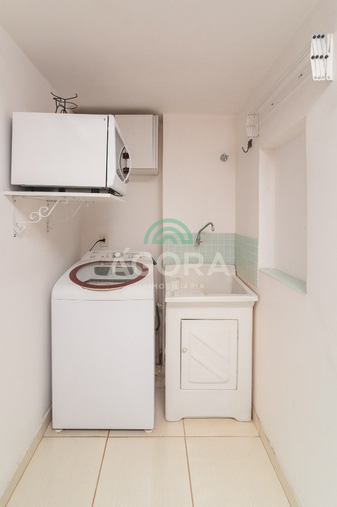 sacada espaçosa com porta de vidro, tanque e máquina de lavar (Área de serviço)