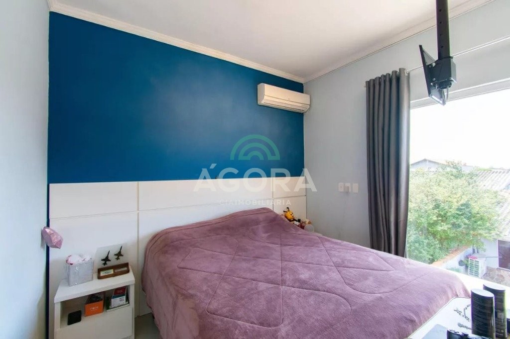 Ágora Cia Imobiliária vende: Belíssimo sobrado semi-mobiliado, com 3 (três) dormitórios sendo 1 (uma) suíte, 3 (três) banheiros, piscina, quiosque com churrasqueira elétrica e pátio grande em gramado. Água quente, aquecimento a gás, ar condicionado nos quartos com moveis feitos sob medida.
