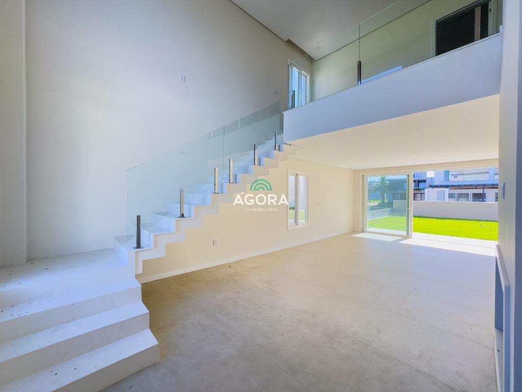 Reservas do lago o condomínio dispõe de acesso por biometria, academia, espaço gourmet, espaço kids, playground, piscina externa com borda infinita, portaria 24h, quadras de tênis, poliesportiva e de areia, sala de jogos, salão de festas e vestiários. Além de internet e banda larga wi-fi no clube de lazer, painéis solares, iluminação em led. Sobrado de alto padrão no condomínio reservas do lago, em santa rita, em terreno de 420m², com arquitetura moderna e imponente, pé-direito duplo e excelente iluminação natural. Possui 3 (três) suítes, sendo 1 (uma) máster com closet, ducha e bancada dupla, cozinha integrada, depósito e lavanderia separada. Aberturas em pvc na cor preta com persianas automatizadas. Amplo living com lareira, composto por sala de estar e jantar, integrados ao espaço gourmet e ao pátio nos fundos, com espera para piscina. Condomínio com infraestrutura completa de lazer, além de segurança e portaria 24h.