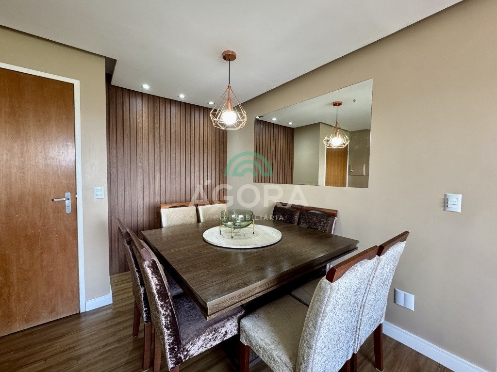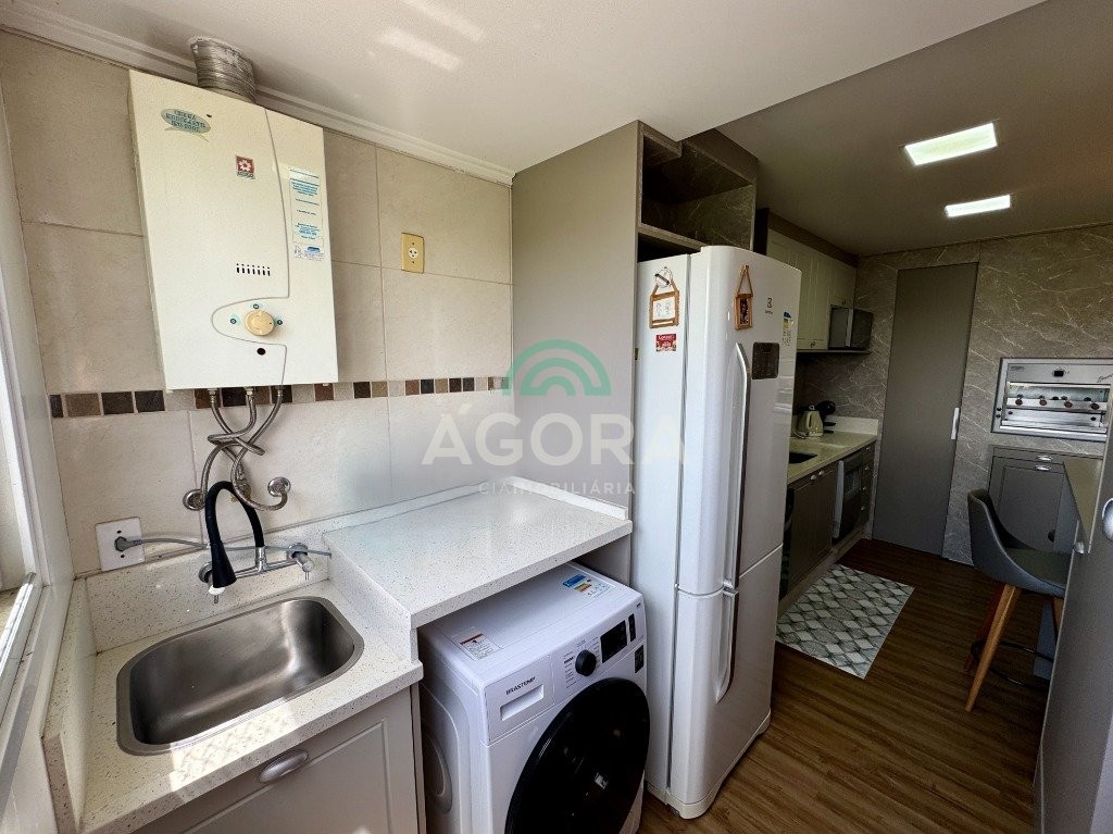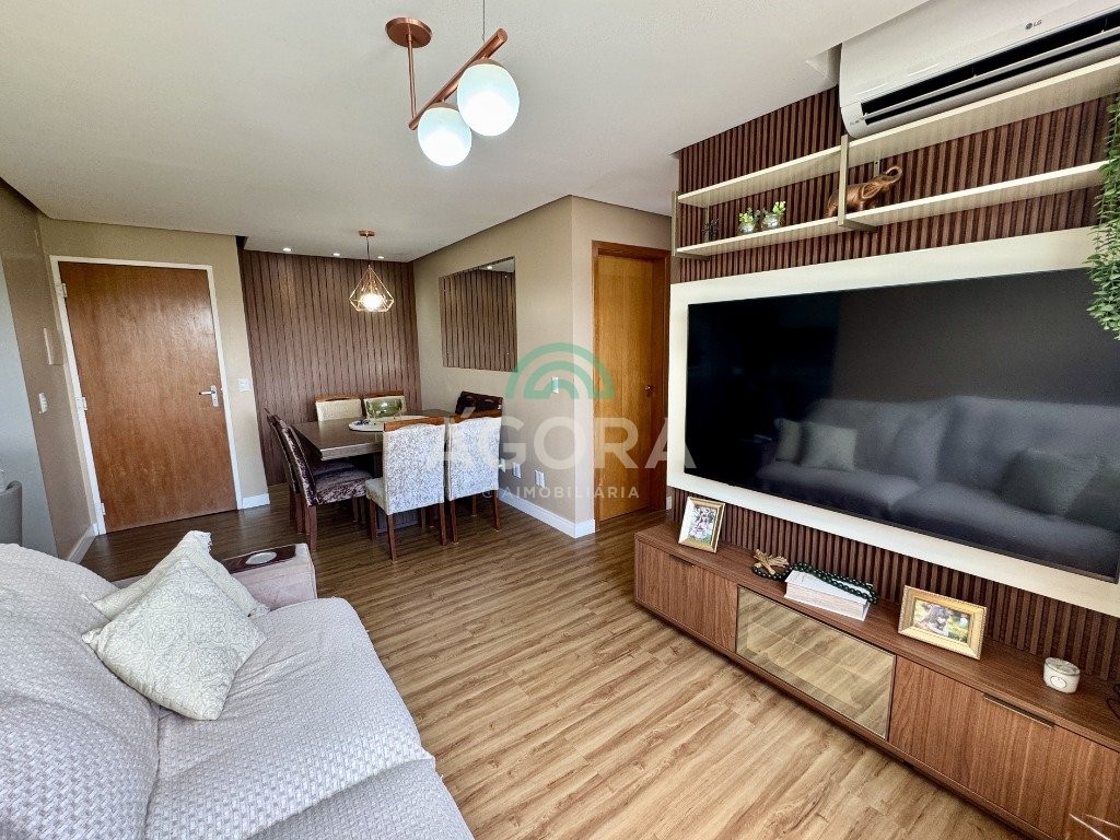 Apartamento impecável, medindo 63m² privativos, com 2 (dois) dormitórios, 1 (uma) vaga de garagem coberta, semi-mobiliado, com dispensa embutida, rebaixo em gesso, churrasqueira, banheiro social, living e água quente. Edifício com elevador, salão de festas, porteiro eletrônico, espaço goumert, monitoramento por câmeras.