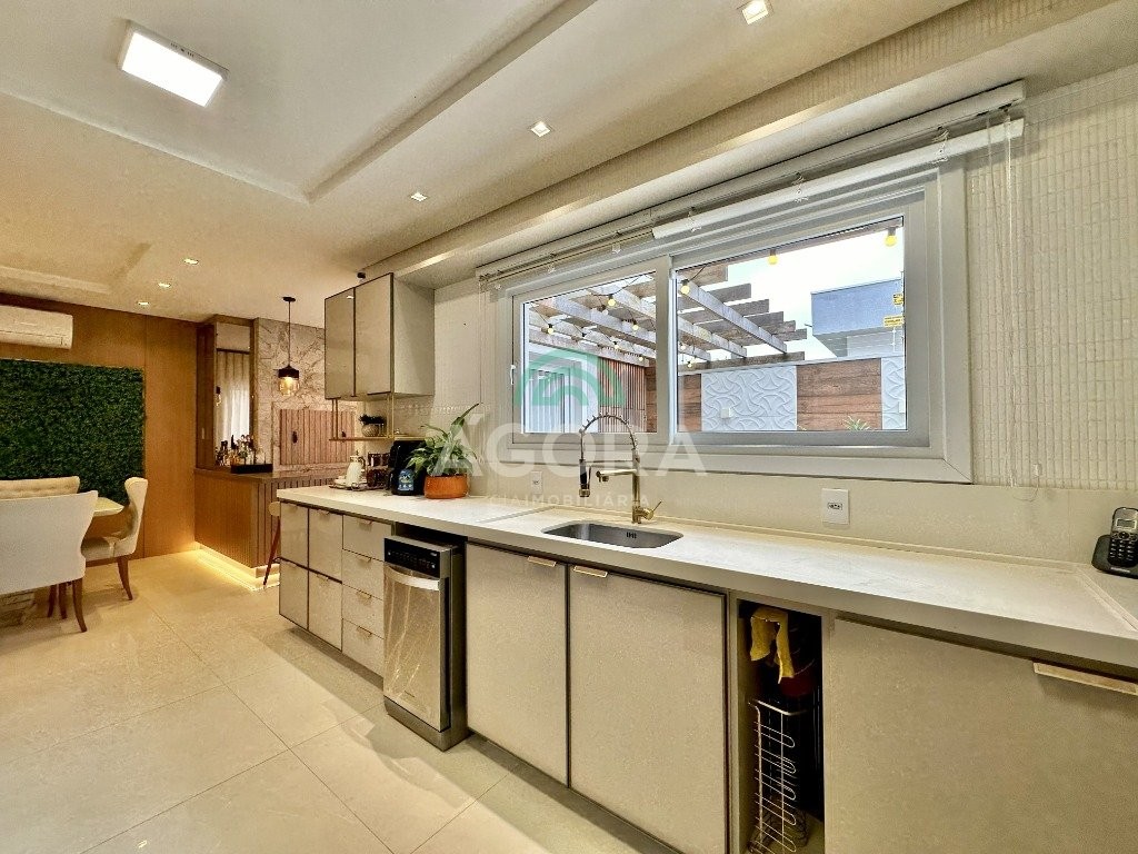 Ágora Cia Imobiliária vende: Ótimo sobrado mobiliado com 246m privativos, de 3 (três) suítes, sendo 1 (uma) master com hidro, + escritório, living integrado, sala de estar com lareira a lenha e lavabo. Sobrado também conta com espaço gourmet com churrasqueira, banheiro auxiliar, lavanderia separada, piscina aquecida e placas fotovoltaicas e garagem para 2 (dois) carros mais 2 (duas) vagas descobertas. Próximo ao ParkShopping.