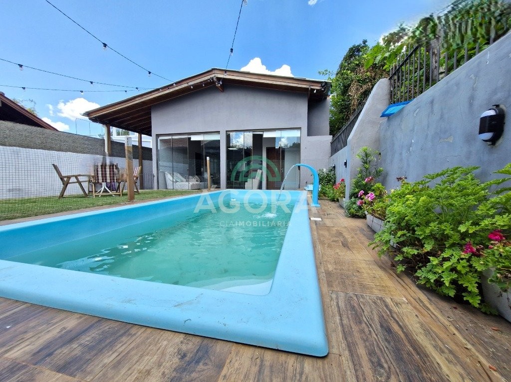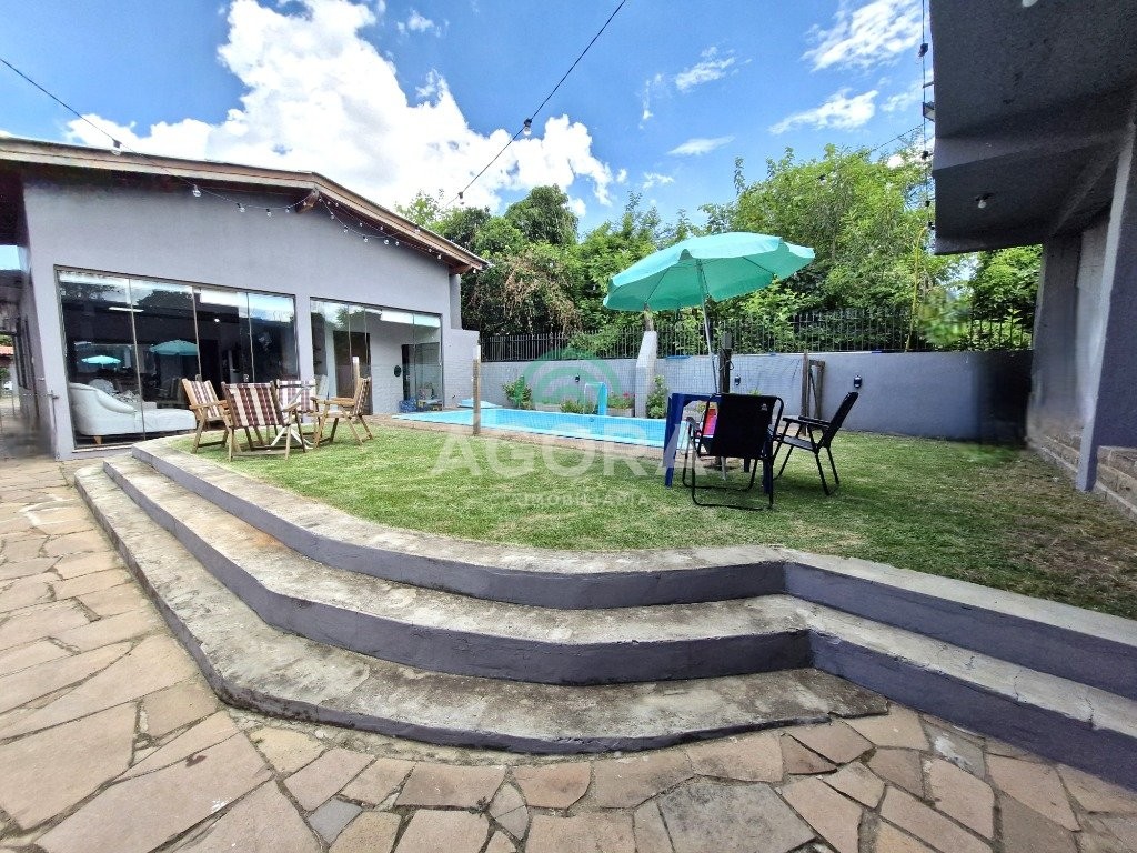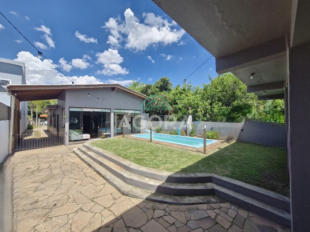 Casa térrea de 153,30 m² privativos, com 3 (três) dormitórios, semi mobiliada, cozinha, sala estar/jantar com lareira, banheiro social, lavabo, área de serviço, ampla varanda com churrasqueira, piscina, jardim com árvores nativas e área gourmet com 60m² (salão de festas) e vagas para 6 (seis) carros. Localização próximo à comércios, ao carrefour e ao canoas shopping. Aceita dação e financiamento.