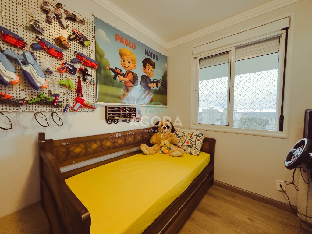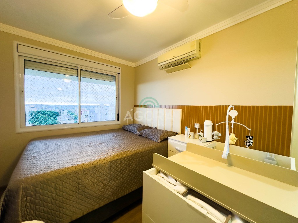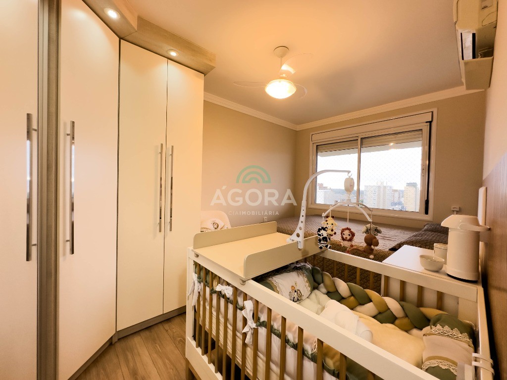 possui 2 (duas) vagas de garagem cobertas. Permanece no imóvel todos os móveis fixos, fogão, depurador, aparelhos de ar condicionado, mesa com cadeiras, sofá e banheiros completos, é retirado somente camas, tvs, geladeira e maquina de lavar. Condomínio com das infraestruturas mais completas de canoas, com piscina, sala de jogos, academia, quadra com grama artificial área verde pista de caminhada e portaria 24h com acesso controlado, tudo isso dentro do condomínio. Localizado no centro da cidade, próximo a comércios, universidades e ao canoas shopping.
