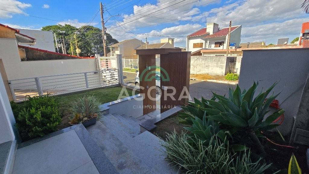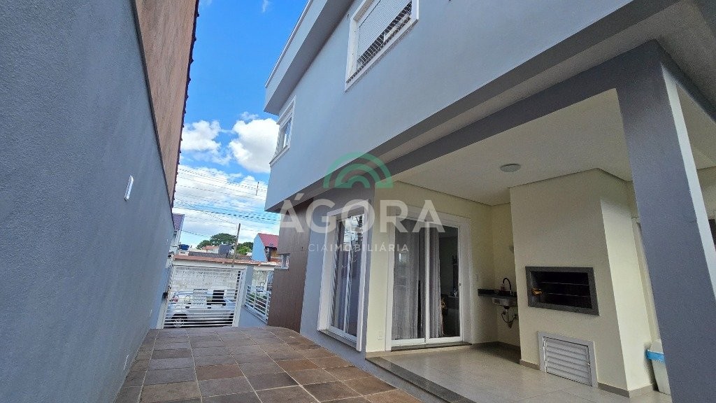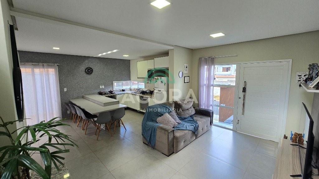 Ágora Cia Imobiliária vende: Casa térrea de 106m² privativos, com 3 (três) dormitórios, sendo 1 (uma) suíte, vaga para 2 (dois) carros, sala para 2 (dois) ambientes, área de serviço, cozinha americana, churrasqueira e espera para lareira. Ótima localização. Prazo de entrega Março/2026.
