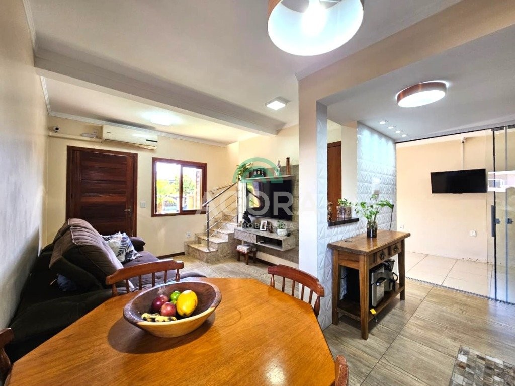 Sobrado de esquina, medindo 90,92m², com 3 (três) dormitórios, sendo 1 (uma) suíte, sala de estar/jantar, cozinha planejada, lavabo, banheiro social, garagem coberta para 2 (dois) automóveis, água quente em todas as torneiras, piso em porcelanato, rebaixo em gesso, cerca elétrica, churrasqueira e fogão campeiro. Próximo a escolas, mercados, transporte público, etc. Aceita financiamento e fgts.