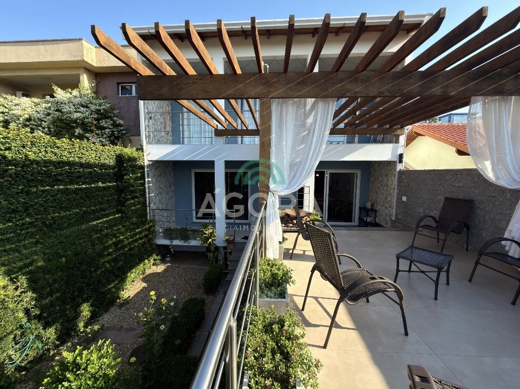 Sobrado com 3 (três) dormitórios com sacada, metragem 158,52m² privativos sendo: sala de estar, jantar e cozinha integrados, o banheiro social tem banheira com hidro, escritório, lavanderia e churrasqueira conectadas ao pátio dos fundos. Terraço que pode ser colocado ofurô ou piscina, espaço com pergolado de madeira. Posição solar oeste, sacada no dormitório do casal. Próximo a todos os comércios centrais, escolas e praça do parque universitário. Aceita financiamento, fgts e avalia carro!