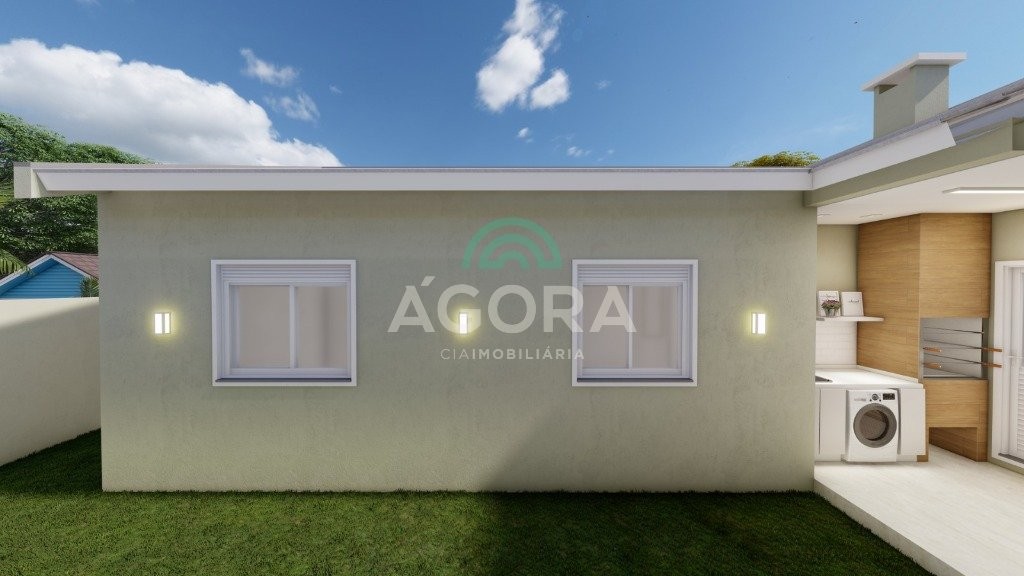 Excelente casa térrea de 58m² privativos, com 2 (dois) dormitórios, sala de estar e jantar integradas com a cozinha, banheiro social, lavanderia, espaço aos fundos e 2 (duas) vagas de garagem lado a lado. Imóvel tem laje.