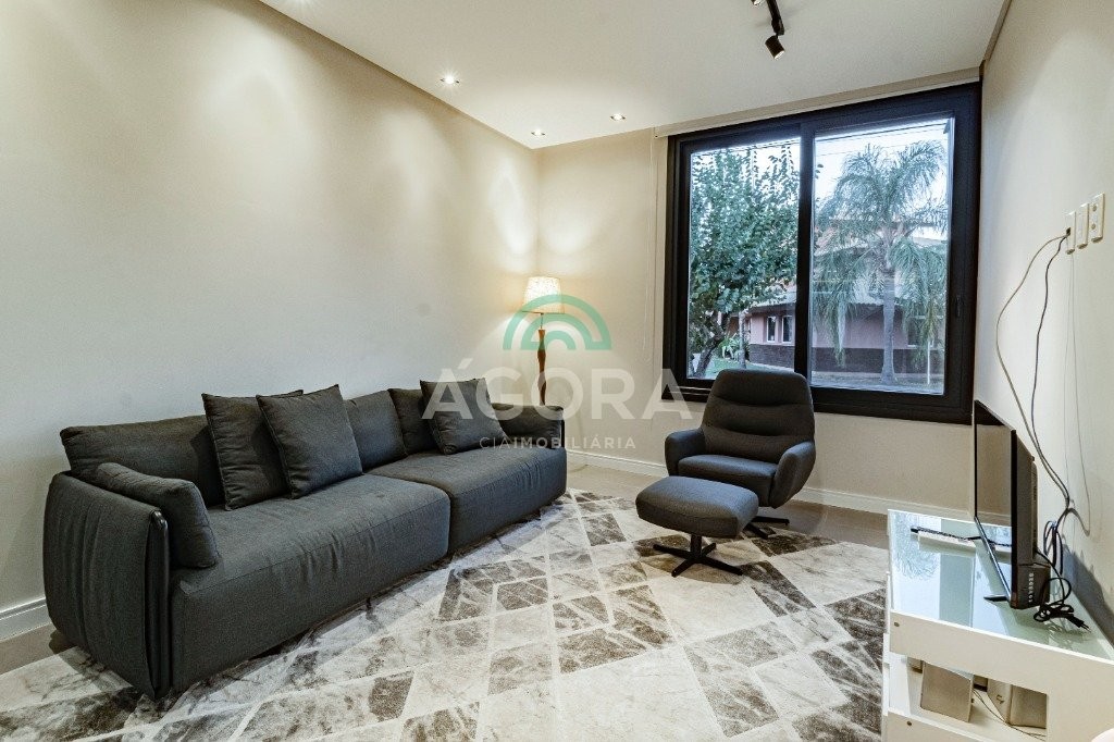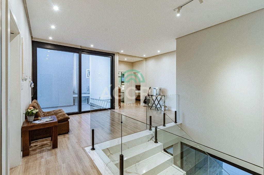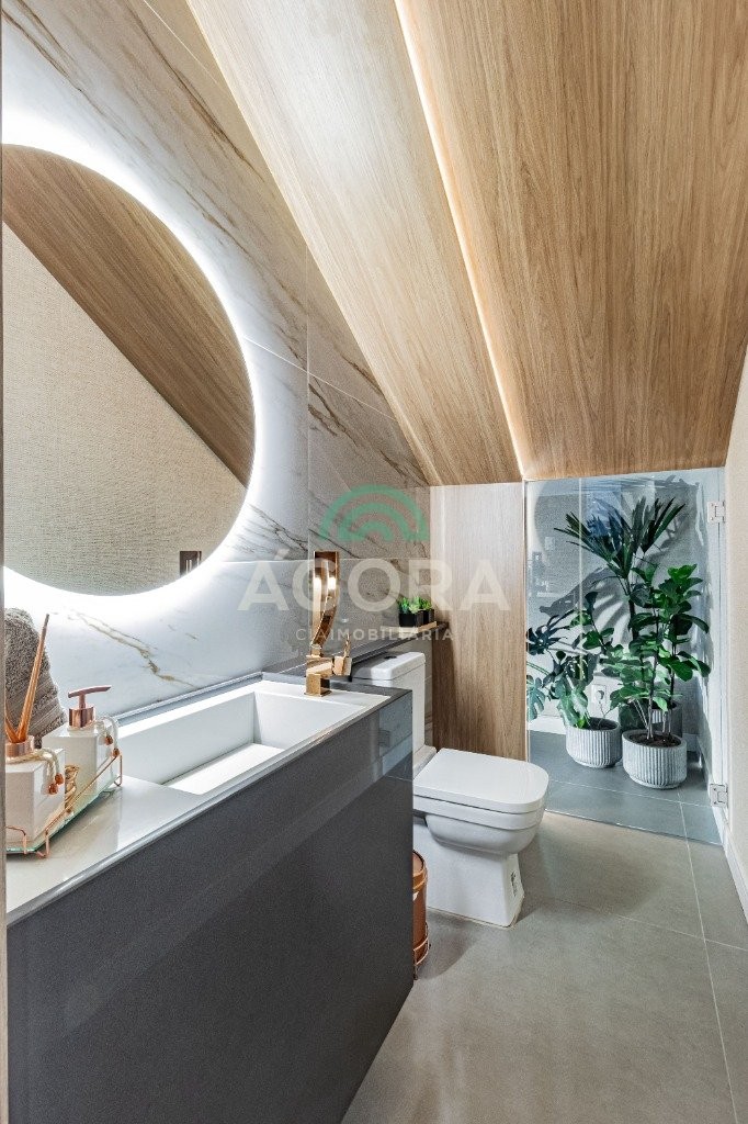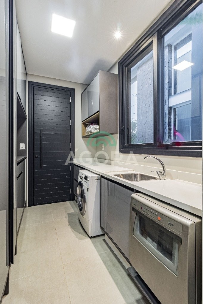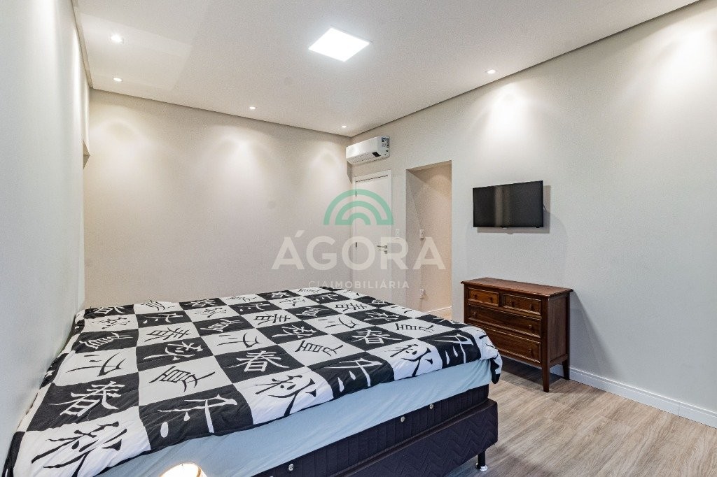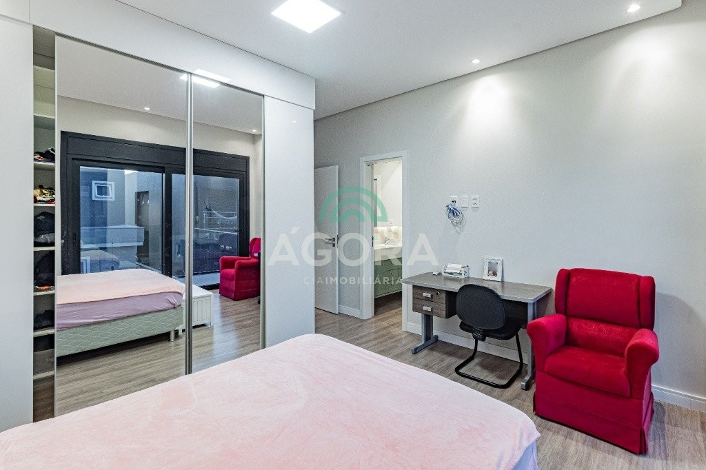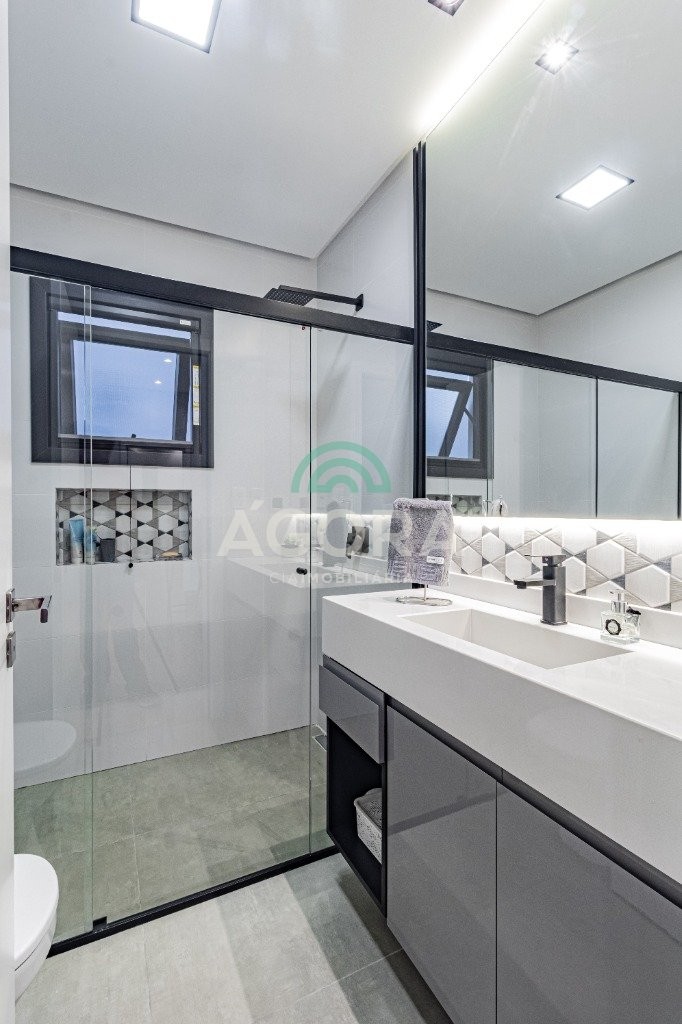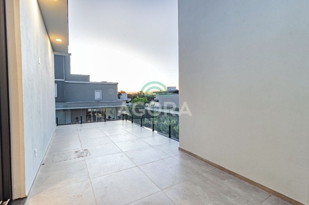 Infra completa alto padrão sobrado em condomínio de alto padrão, semimobiliado, de 318m² de área construída, conceito aberto e piso em porcelanato. Parte térrea: living com 2 (dois) ambientes distintos e integrados, lareira, escada revestida em mármore, lavabo, suíte completa, persianas automatizadas na casa, copa e cozinha com passa pratos, lavanderia, espaço de lazer com churrasqueira e pergolado. Parte superior: estar íntimo no mezanino, 4 (quatro) suítes, sendo 2 (duas) delas suíte master com sacada, outra conta com um terraço, e hidro. Terreno com 433m². Paisagismo com irrigação automática, cisterna com recolhimento de água da chuva. Garagem coberta para 2 (dois) carros lado a lado e mais 2 (duas) vagas descobertas. Condomínio fechado com toda a infraestrutura, portaria 24h, sistema integrado de segurança com comunicação inteligente salão de festas, quadra de esportes, quadra fechada de saibro para tênis, lago com peixes, espaços de convivência, piscina com raia, campo de futebol e gás canalizado.
