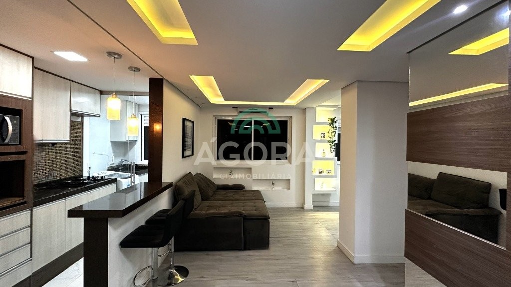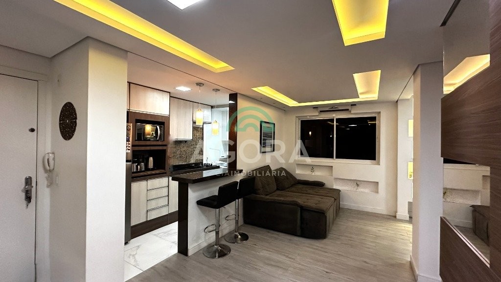 * living estendido (sala ampliada): o terceiro dormitório foi integrado à sala, criando um ambiente amplo, moderno e bem iluminado, ideal para quem valoriza espaço e convivência. (planta reversível para 3 (três) dormitórios, se desejar). * 2 (dois) dormitórios, sendo 1 (uma) suíte, totalizando 2 (dois) banheiros no apartamento. * sem mobiliado: conta com móveis planejados sob medida, teto em gesso e projeto de iluminação em led em todos os ambientes. * ar-condicionado instalado na sala e no quarto. * privacidade: localizado no último andar, sem vizinhos acima, garantindo mais silêncio e tranquilidade. * vaga de garagem coberta, em posição estratégica ao lado do hall de acesso.