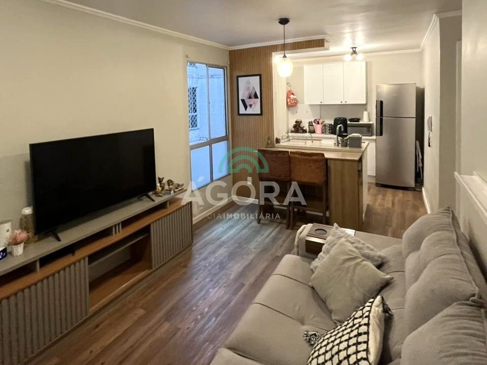 Apartamento de 2 (dois) dormitórios, living integrado entre sala de estar, sala de jantar e cozinha, área de serviço, banheiro social e garagem para 1 (um) veículo. O imóvel permanece semi mobiliado, com todos os móveis planejados, e aparelhos de ar condicionado. Localizado no bairro são josé, próximo ao supermercado viezzer. Condomínio fechado com portaria 24 horas, 2 (dois) salões de festas, quiosque com churrasqueira, playground, piscina adulto e infantil, acesso com tag para moradores. Aceita financiamento bancário