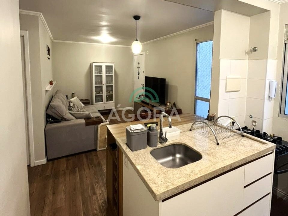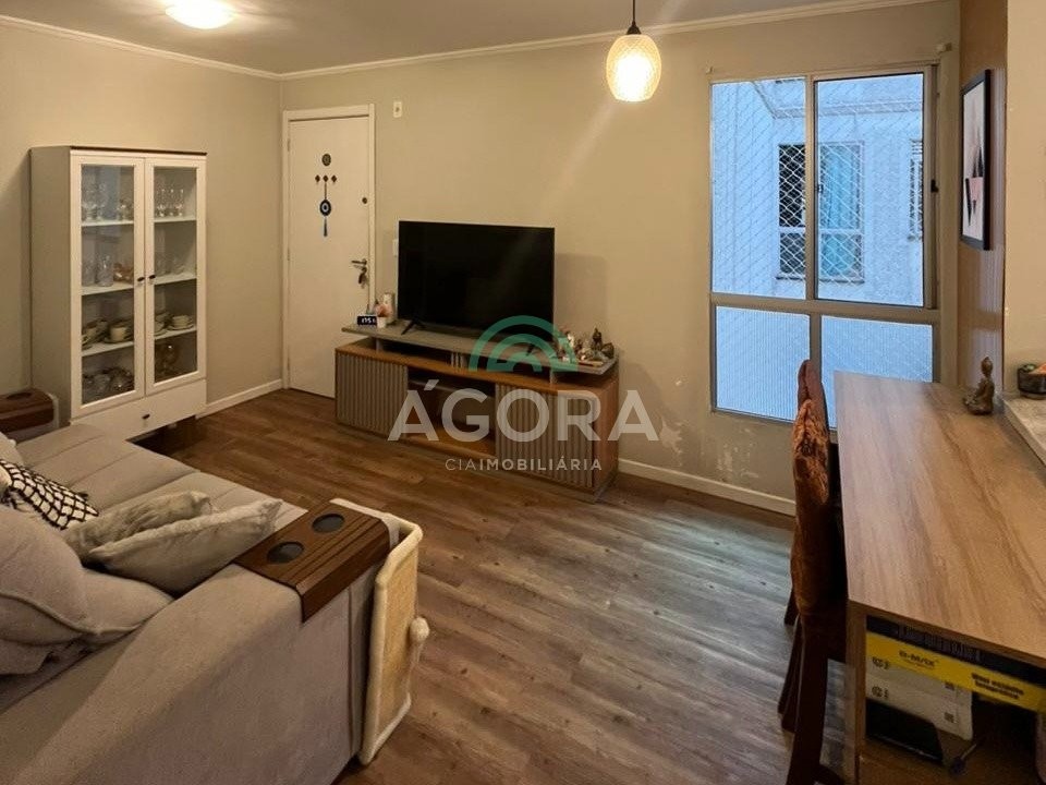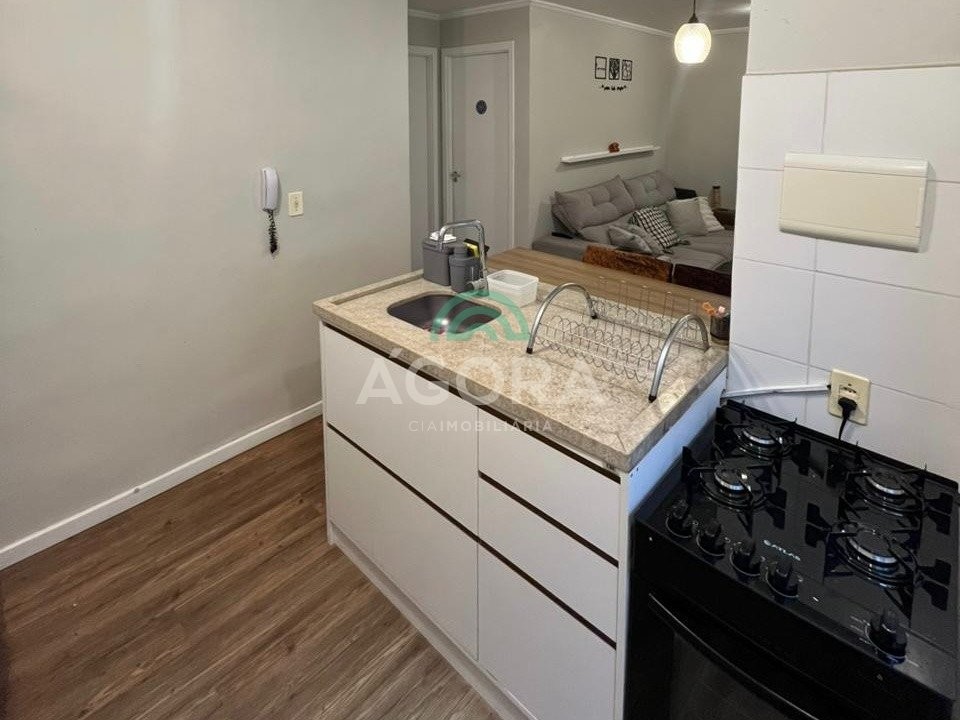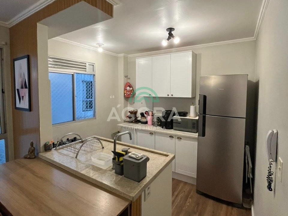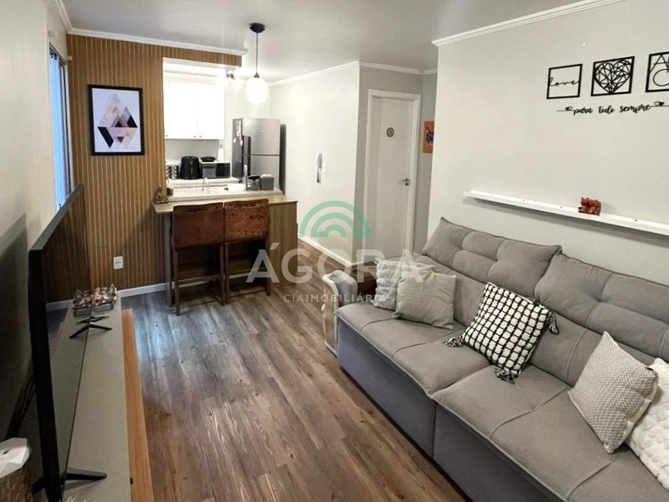 Apartamento de 2 (dois) dormitórios, living integrado entre sala de estar, sala de jantar e cozinha, área de serviço, banheiro social e garagem para 1 (um) veículo. O imóvel permanece semi mobiliado, com todos os móveis planejados, e aparelhos de ar condicionado. Localizado no bairro são josé, próximo ao supermercado viezzer. Condomínio fechado com portaria 24 horas, 2 (dois) salões de festas, quiosque com churrasqueira, playground, piscina adulto e infantil, acesso com tag para moradores. Aceita financiamento bancário