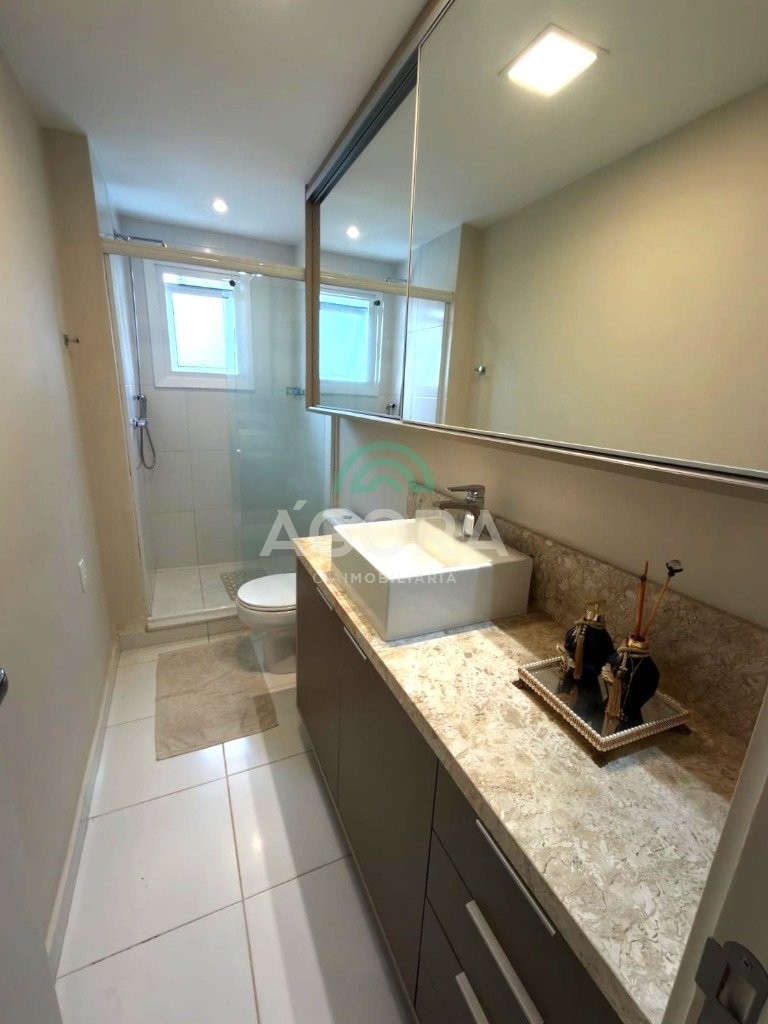Apartamento de 93,38 m² com 3 dormitórios e sacada com churrasqueira.